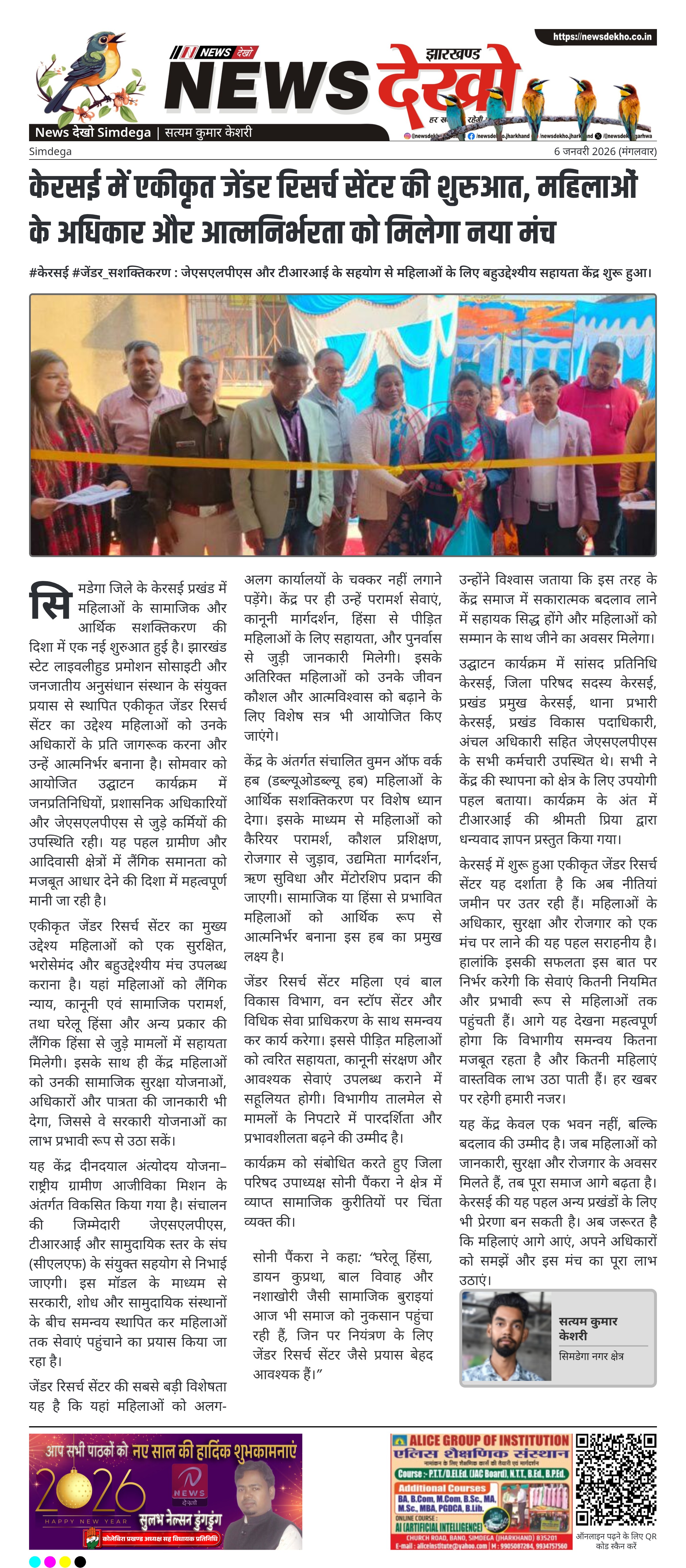 #केरसई #जेंडर_सशक्तिकरण : जेएसएलपीएस और टीआरआई के सहयोग से महिलाओं के लिए बहुउद्देश्यीय सहायता केंद्र शुरू हुआ। केरसई प्रखंड में एकीकृत जेंडर रिसर्च सेंटर का शुभारंभ। उद्घाटन जिला परिषद उपाध्यक्ष सोनी पैंकरा द्वारा दीप प्रज्वलन के साथ। केंद्र का संचालन जेएसएलपीएस, टीआरआई और सीएलएफ के सहयोग से। महिलाओं को लैंगिक…