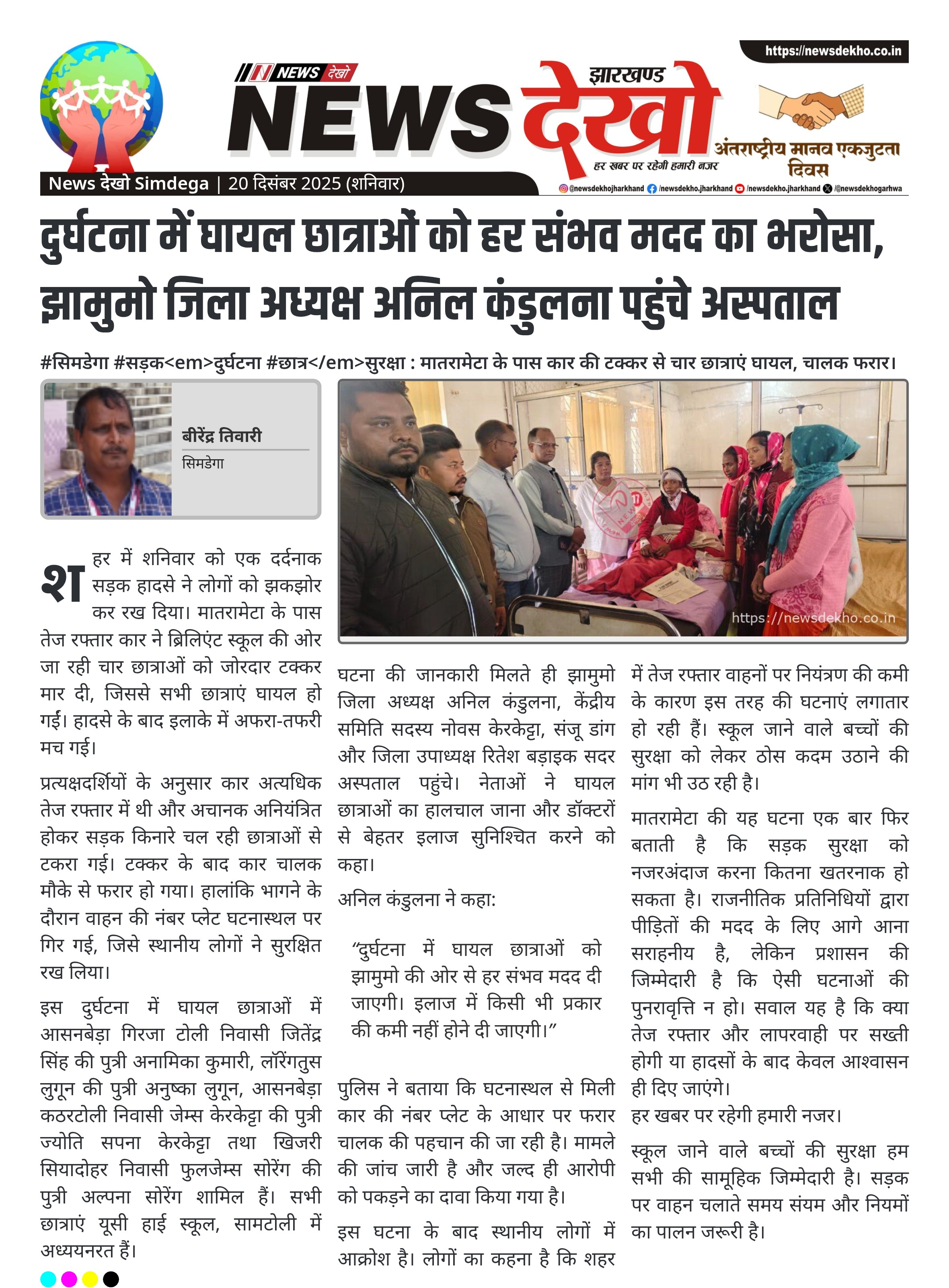 दुर्घटना में घायल छात्राओं को हर संभव मदद का भरोसा, झामुमो जिला अध्यक्ष अनिल कंडुलना पहुंचे अस्पताल