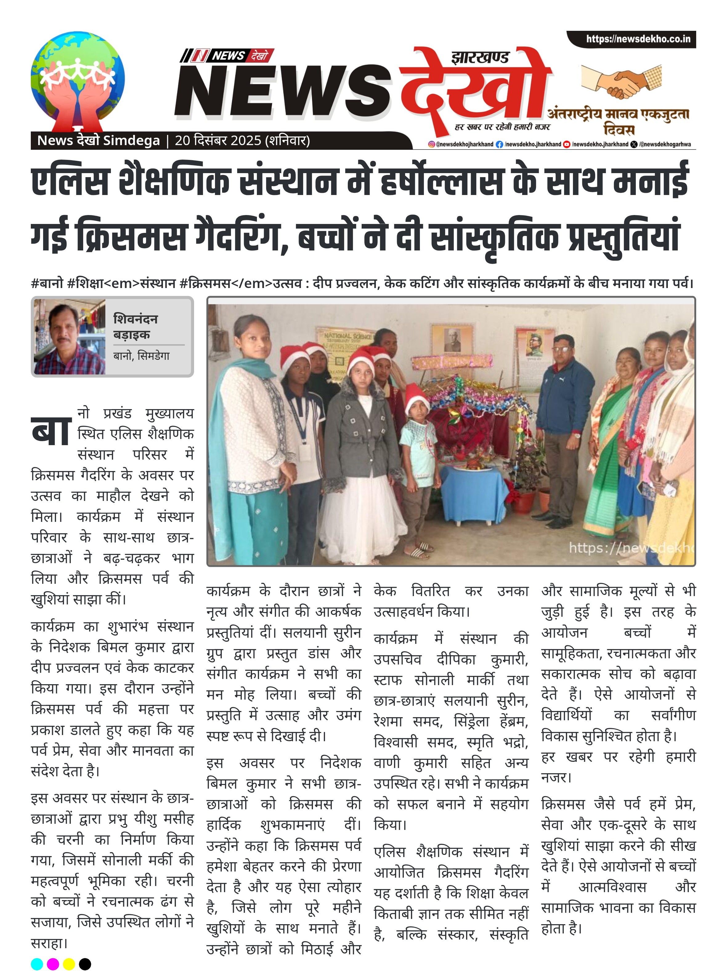 एलिस शैक्षणिक संस्थान में हर्षोल्लास के साथ मनाई गई क्रिसमस गैदरिंग, बच्चों ने दी सांस्कृतिक प्रस्तुतियां