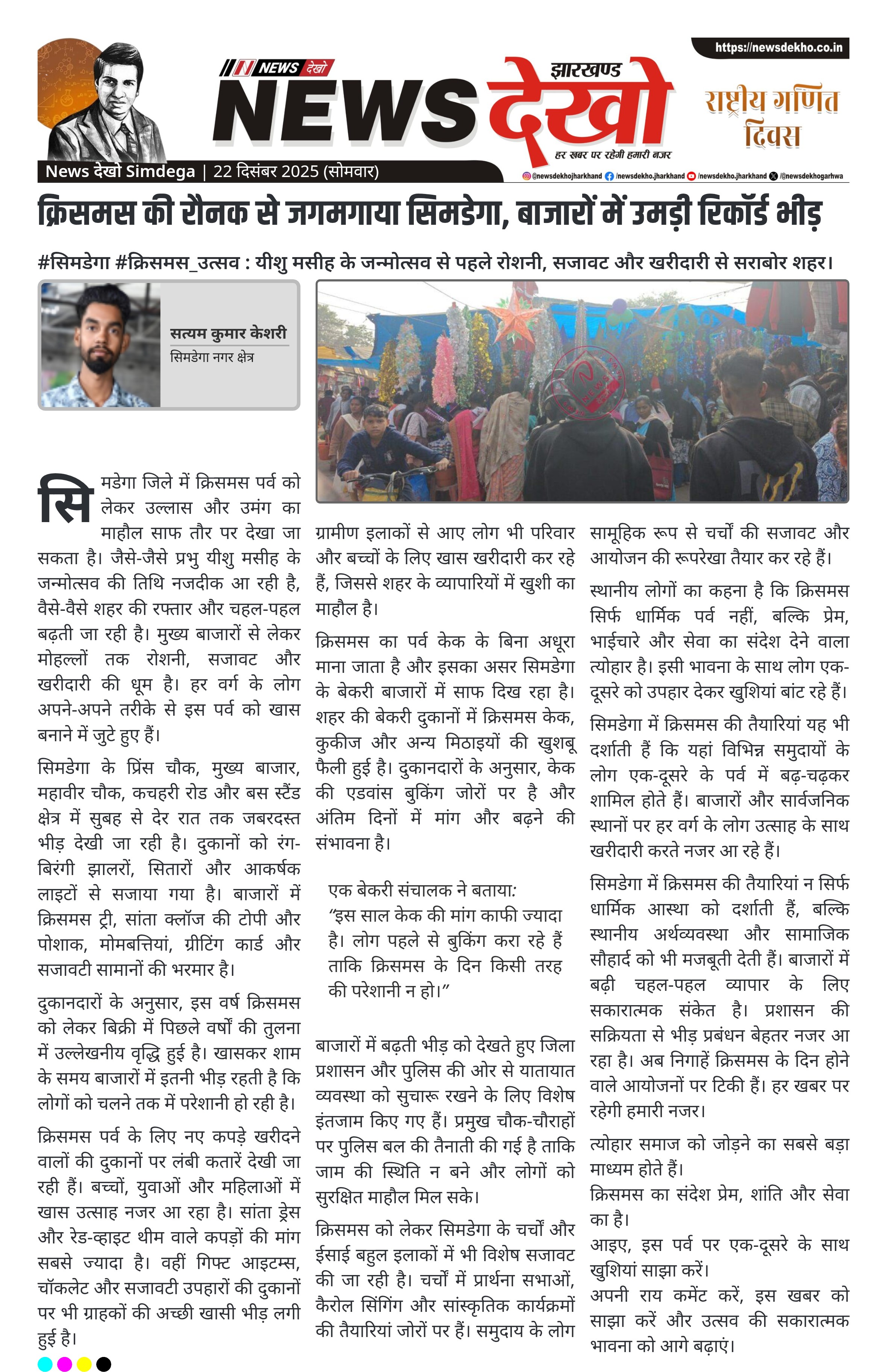 क्रिसमस की रौनक से जगमगाया सिमडेगा, बाजारों में उमड़ी रिकॉर्ड भीड़