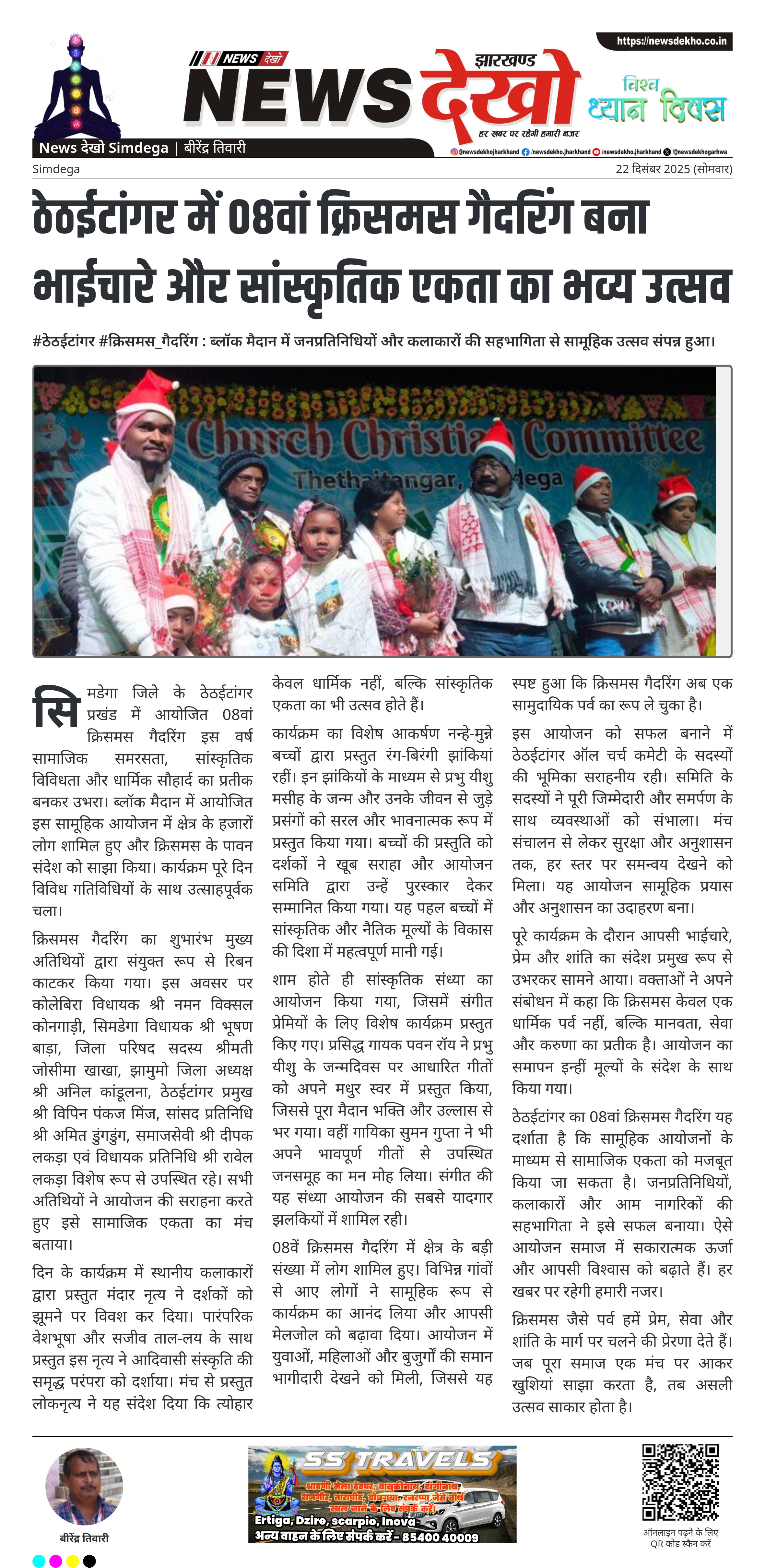 ठेठईटांगर में 08वां क्रिसमस गैदरिंग बना भाईचारे और सांस्कृतिक एकता का भव्य उत्सव