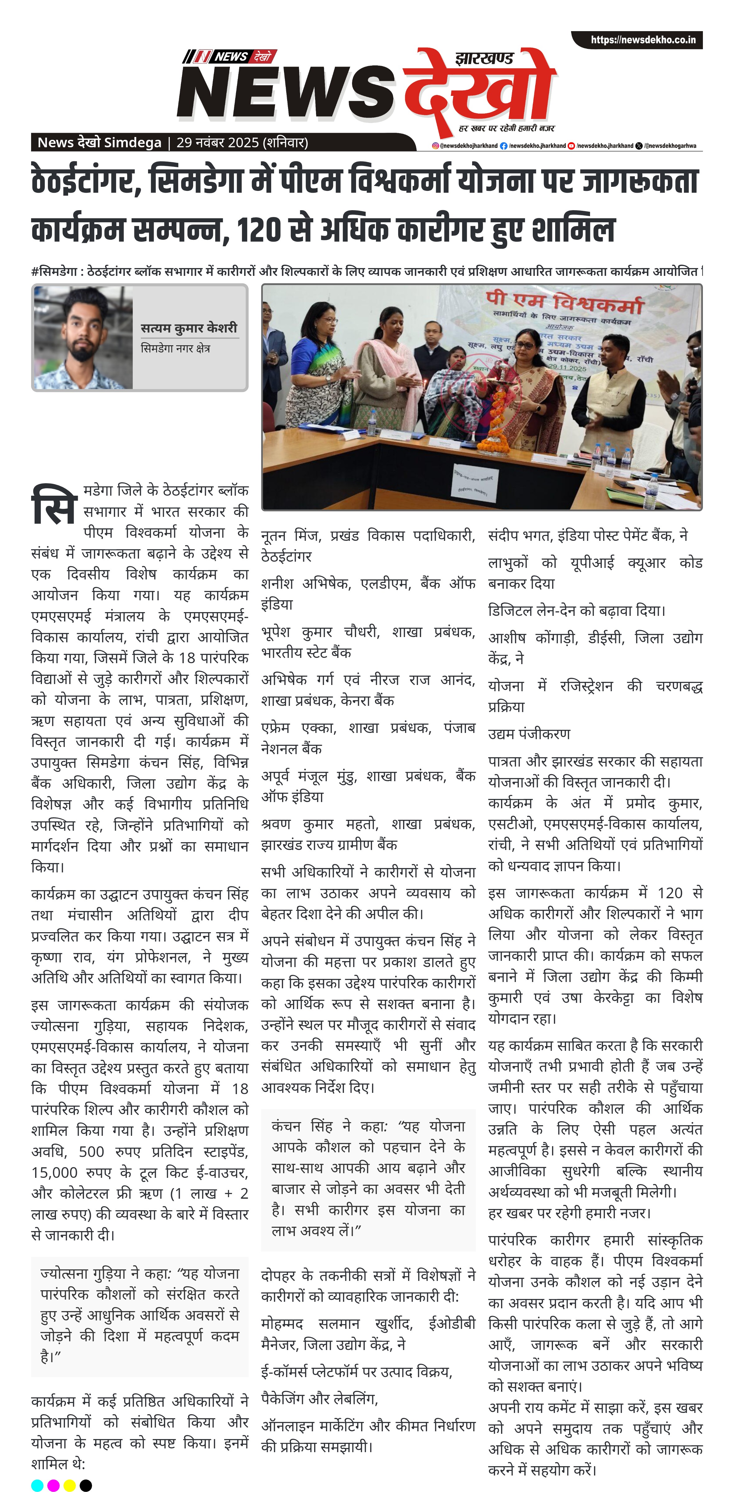 ठेठईटांगर, सिमडेगा में पीएम विश्वकर्मा योजना पर जागरूकता कार्यक्रम सम्पन्न, 120 से अधिक कारीगर हुए शामिल