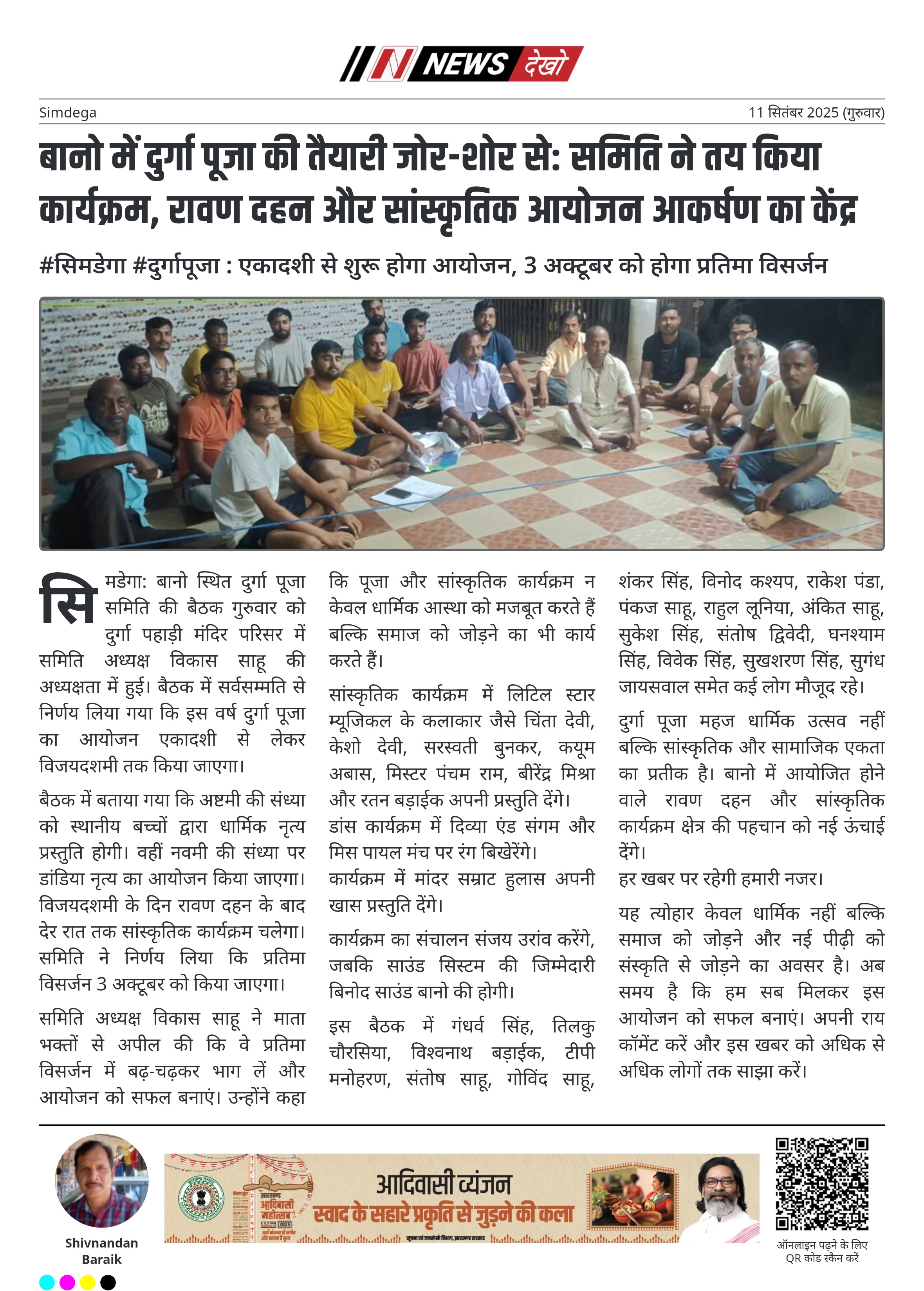 बानो में दुर्गा पूजा की तैयारी जोर-शोर से: समिति ने तय किया कार्यक्रम, रावण दहन और सांस्कृतिक आयोजन आकर्षण का केंद्र