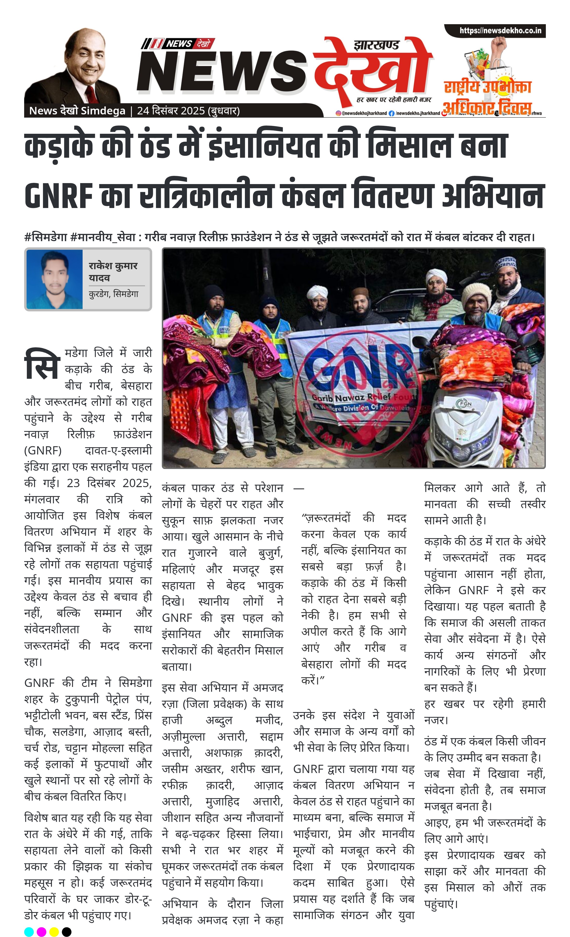 कड़ाके की ठंड में इंसानियत की मिसाल बना GNRF का रात्रिकालीन कंबल वितरण अभियान