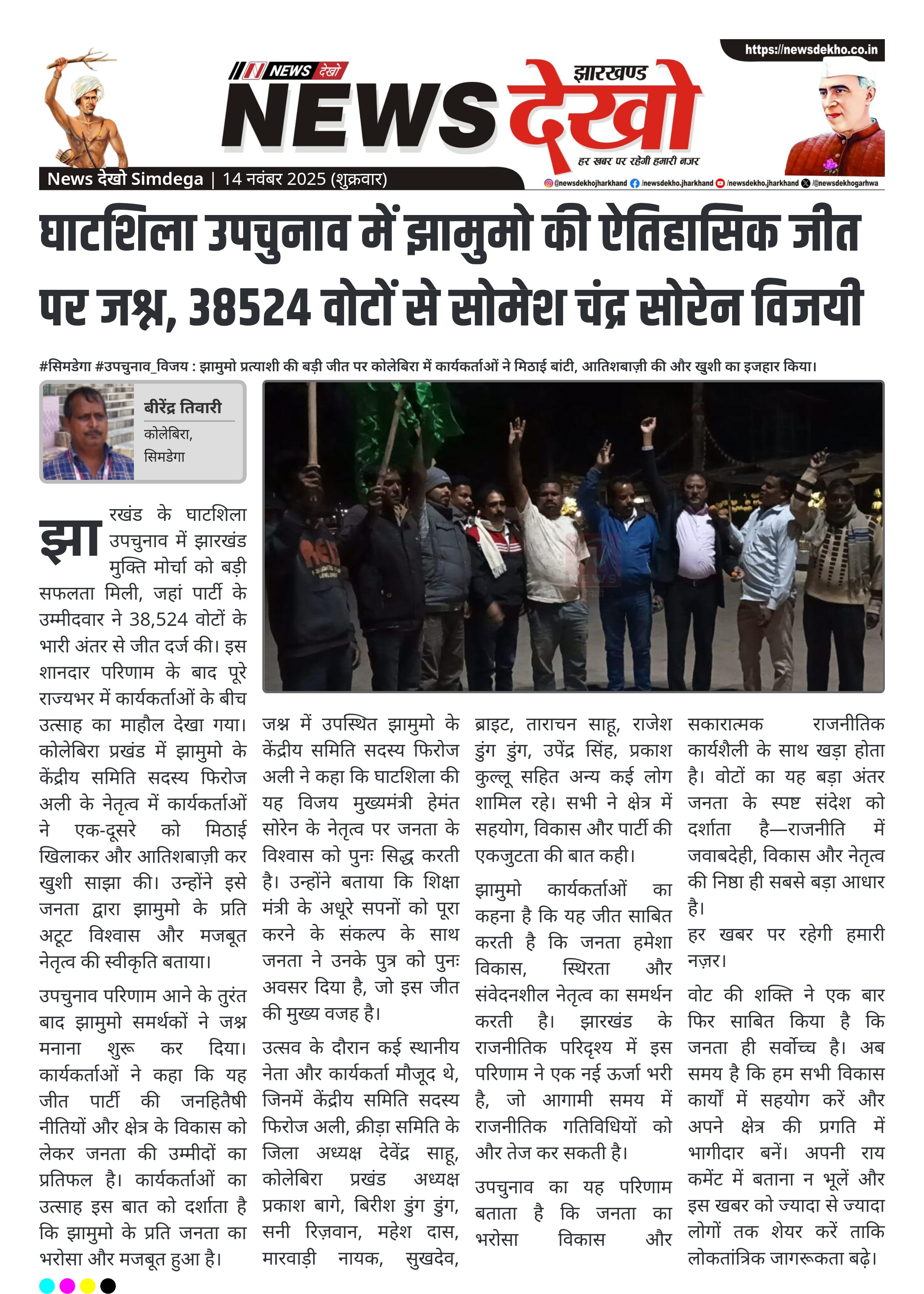 घाटशिला उपचुनाव में झामुमो की ऐतिहासिक जीत पर जश्न, 38524 वोटों से सोमेश चंद्र सोरेन विजयी