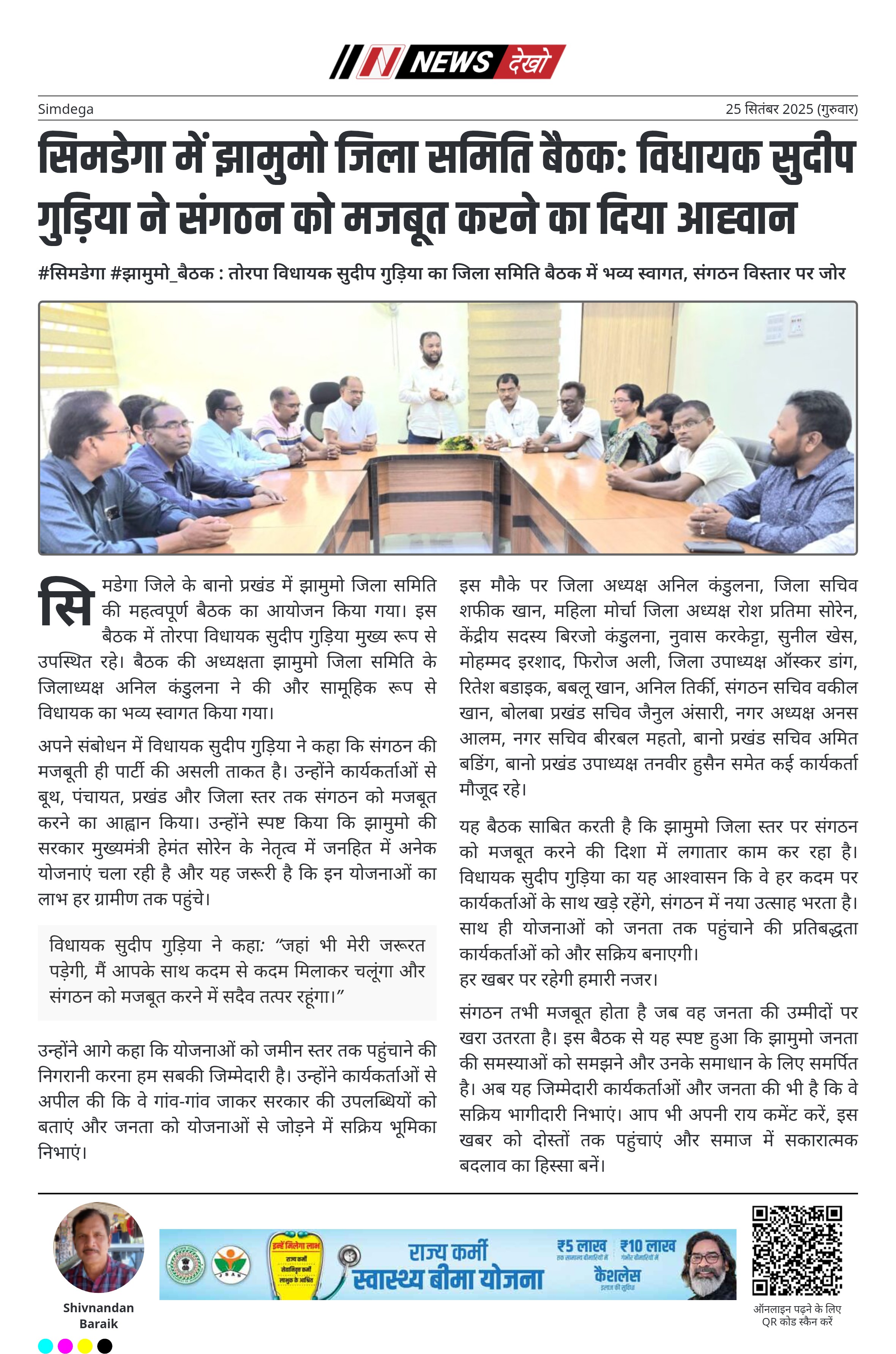 - सिमडेगा जिला समिति बैठक में विधायक सुदीप गुड़िया की मौजूदगी।