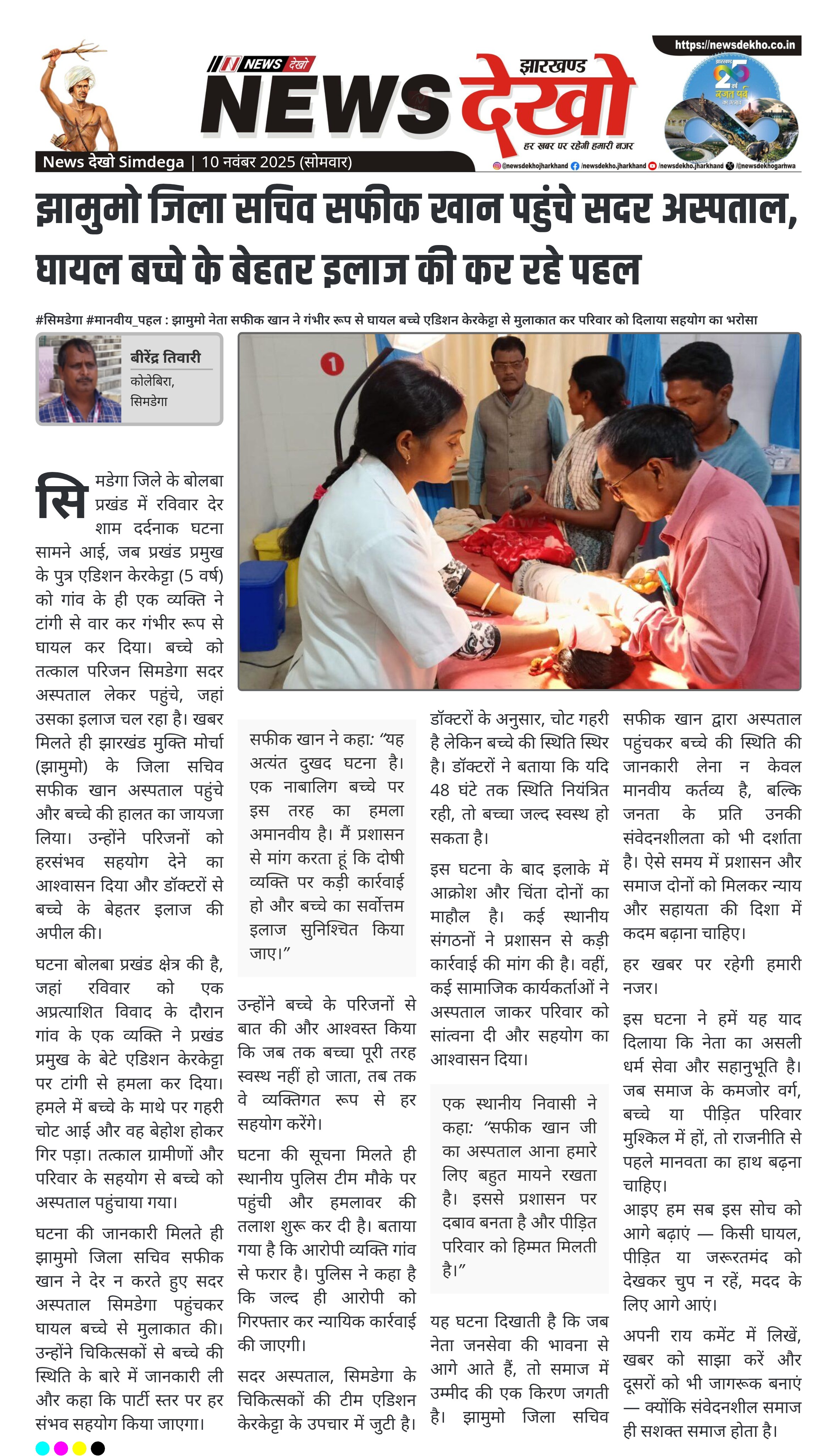 #सिमडेगा #मानवीय_पहल : झामुमो नेता सफीक खान ने गंभीर रूप से घायल बच्चे एडिशन केरकेट्टा से मुलाकात कर परिवार को दिलाया सहयोग का भरोसा