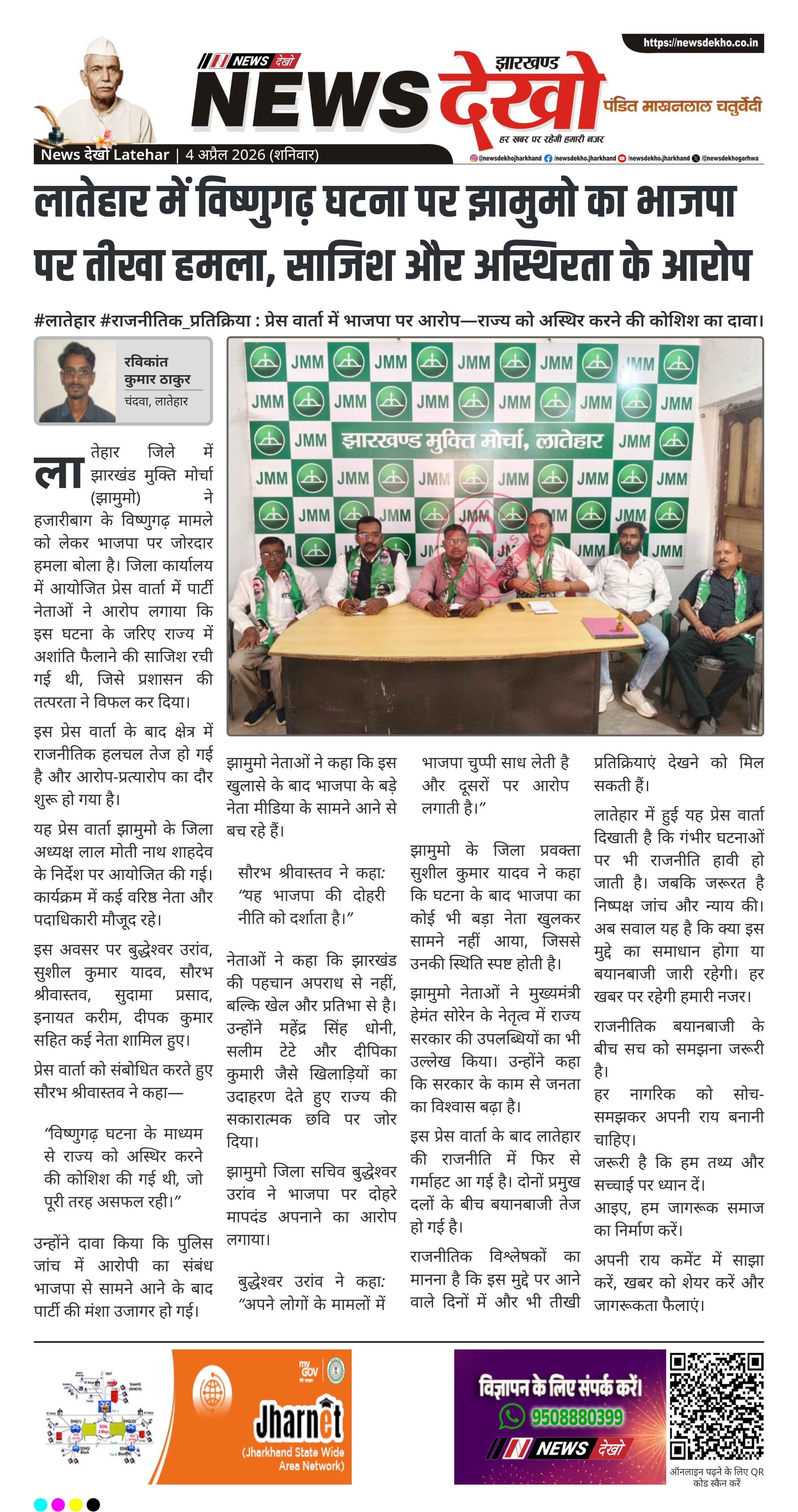 इस प्रेस वार्ता के बाद लातेहार की राजनीति में फिर से गर्माहट आ गई है। दोनों प्रमुख दलों के बीच बयानबाजी तेज हो गई है।