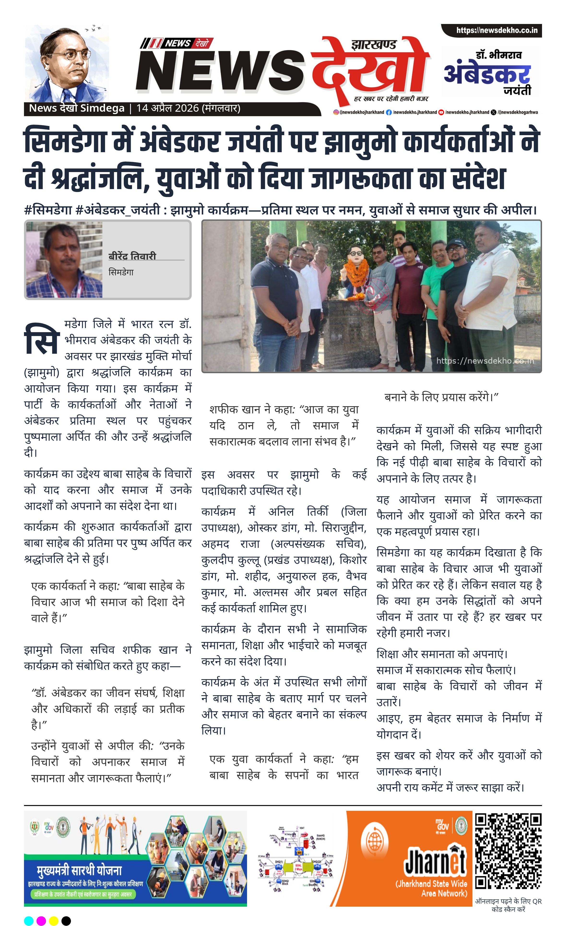#सिमडेगा #अंबेडकर_जयंती : झामुमो कार्यक्रम—प्रतिमा स्थल पर नमन, युवाओं से समाज सुधार की अपील।
