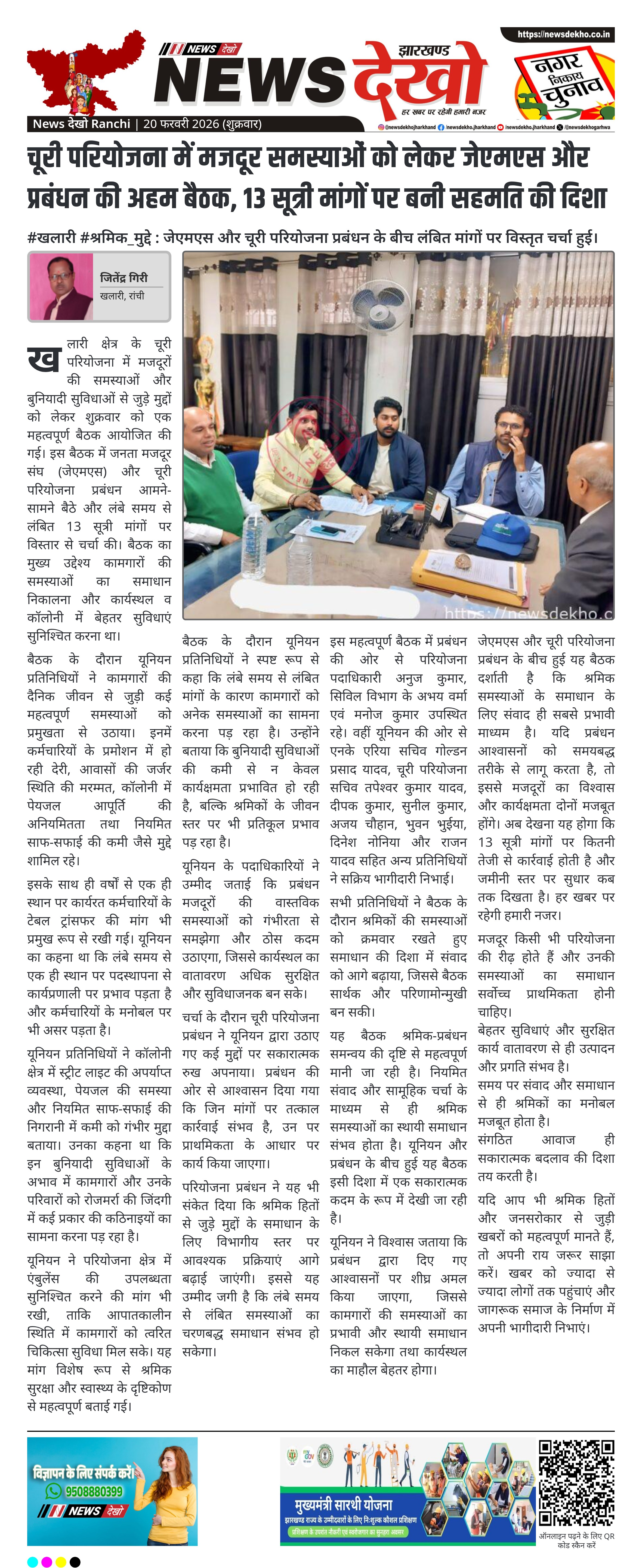 - जनता मजदूर संघ (जेएमएस) और चूरी परियोजना प्रबंधन के बीच शुक्रवार को अहम बैठक आयोजित।