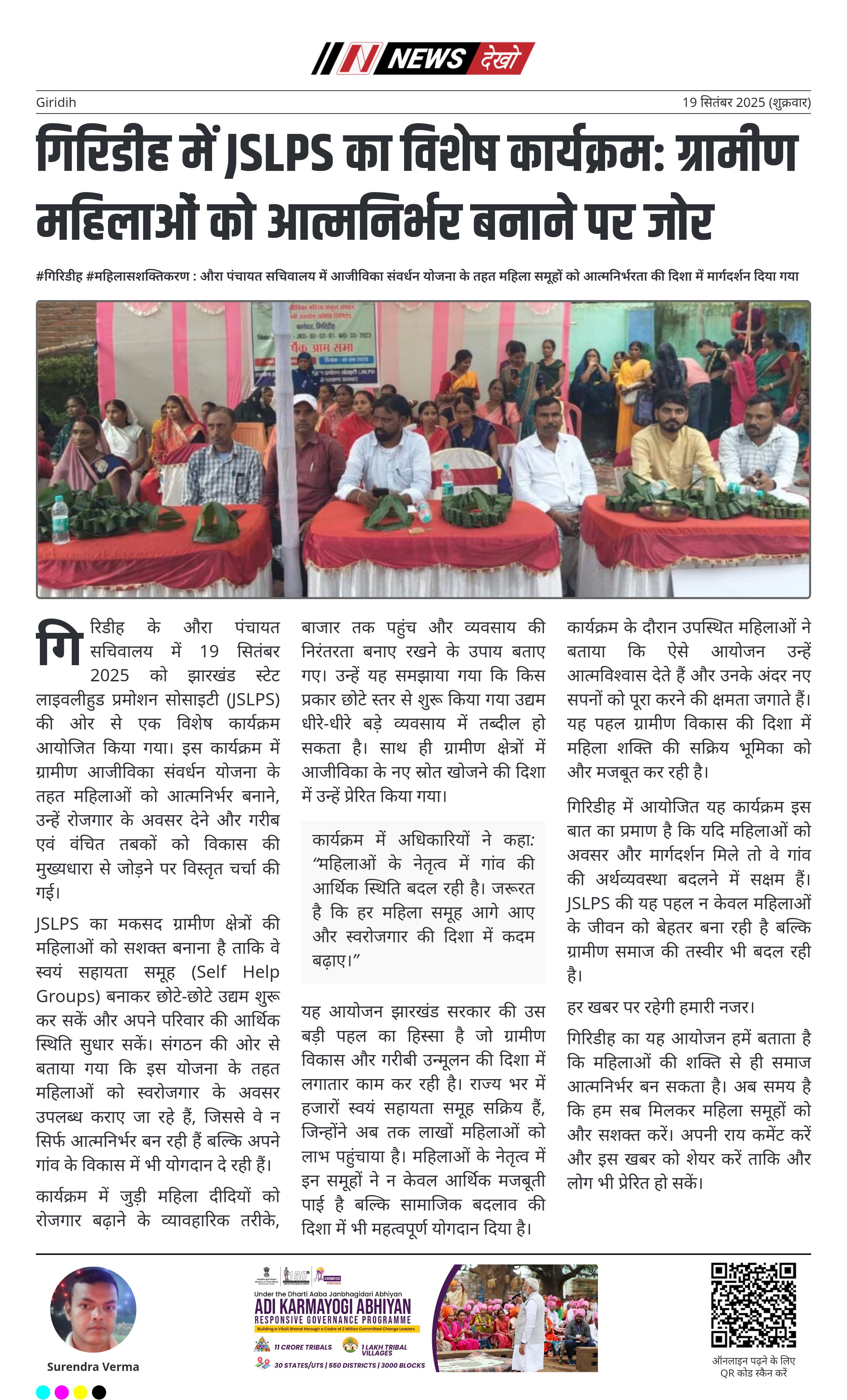 गिरिडीह में आयोजित यह कार्यक्रम इस बात का प्रमाण है कि यदि महिलाओं को अवसर और मार्गदर्शन मिले तो वे गांव की अर्थव्यवस्था बदलने में सक्षम हैं। JSLPS की यह पहल न केवल महिलाओं के जीवन को बेहतर बना रही है बल्कि ग्रामीण समाज की तस्वीर भी बदल रही है।