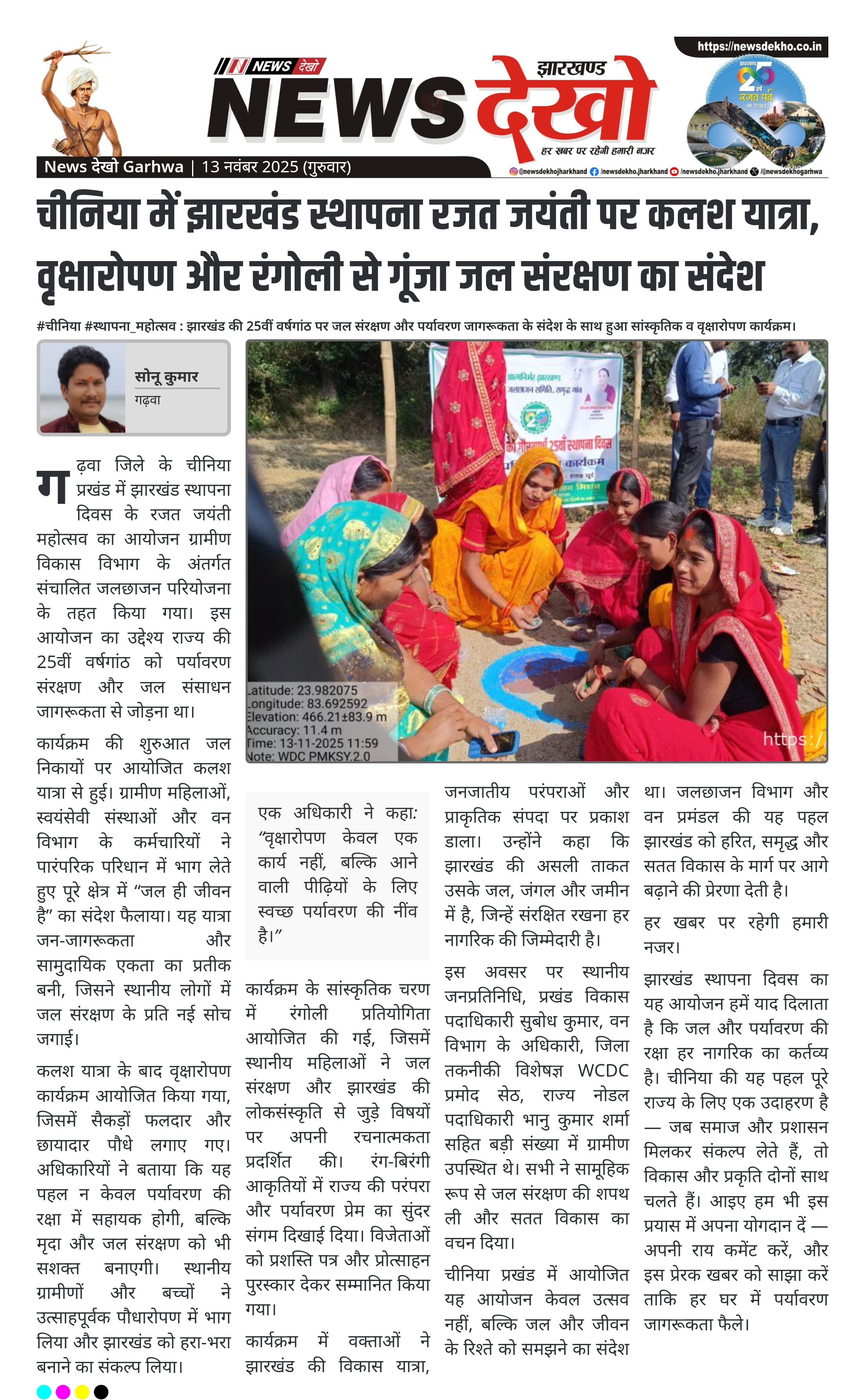#चीनिया #स्थापना_महोत्सव : झारखंड की 25वीं वर्षगांठ पर जल संरक्षण और पर्यावरण जागरूकता के संदेश के साथ हुआ सांस्कृतिक व वृक्षारोपण कार्यक्रम।