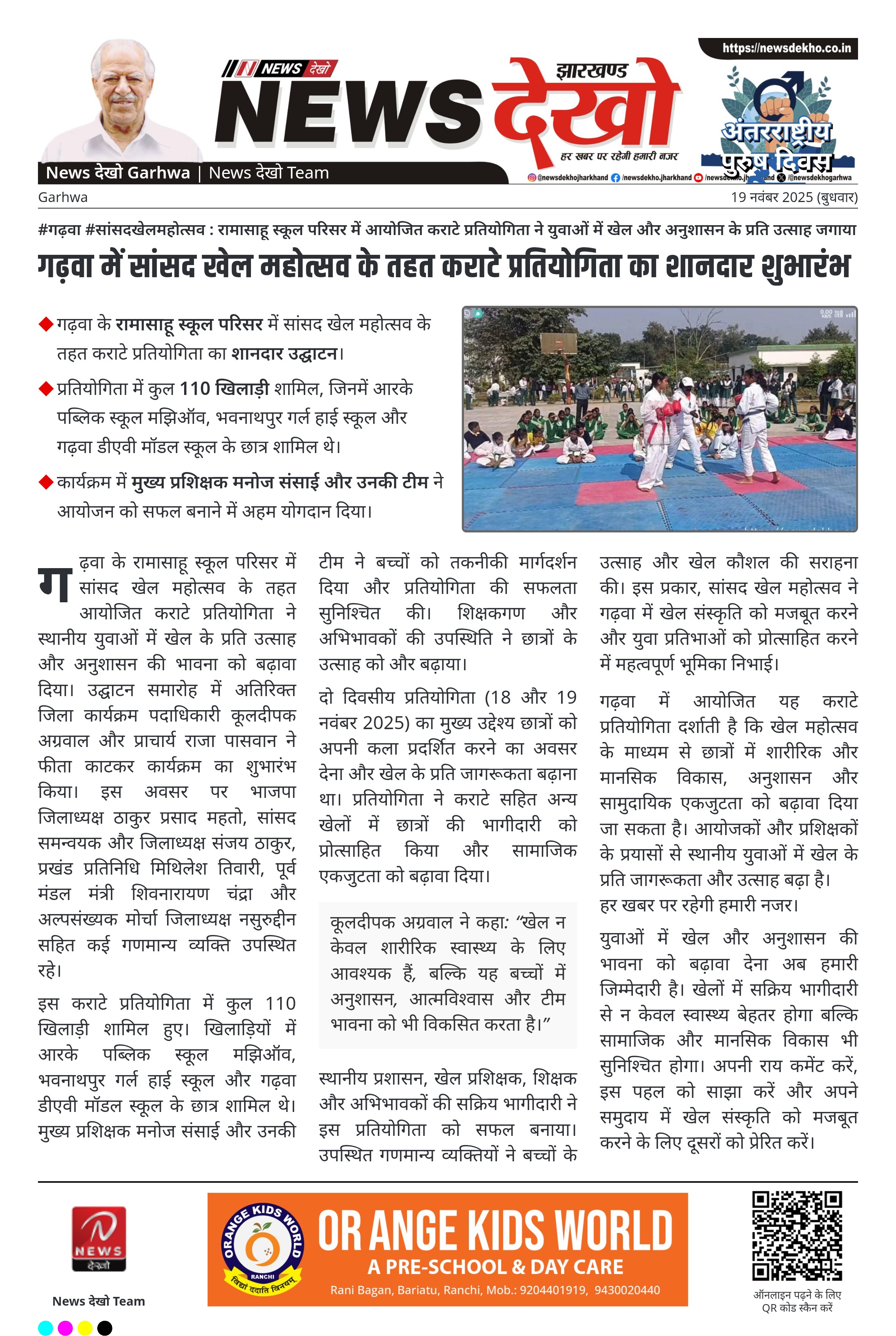 - गढ़वा के रामासाहू स्कूल परिसर में सांसद खेल महोत्सव के तहत कराटे प्रतियोगिता का शानदार उद्घाटन।