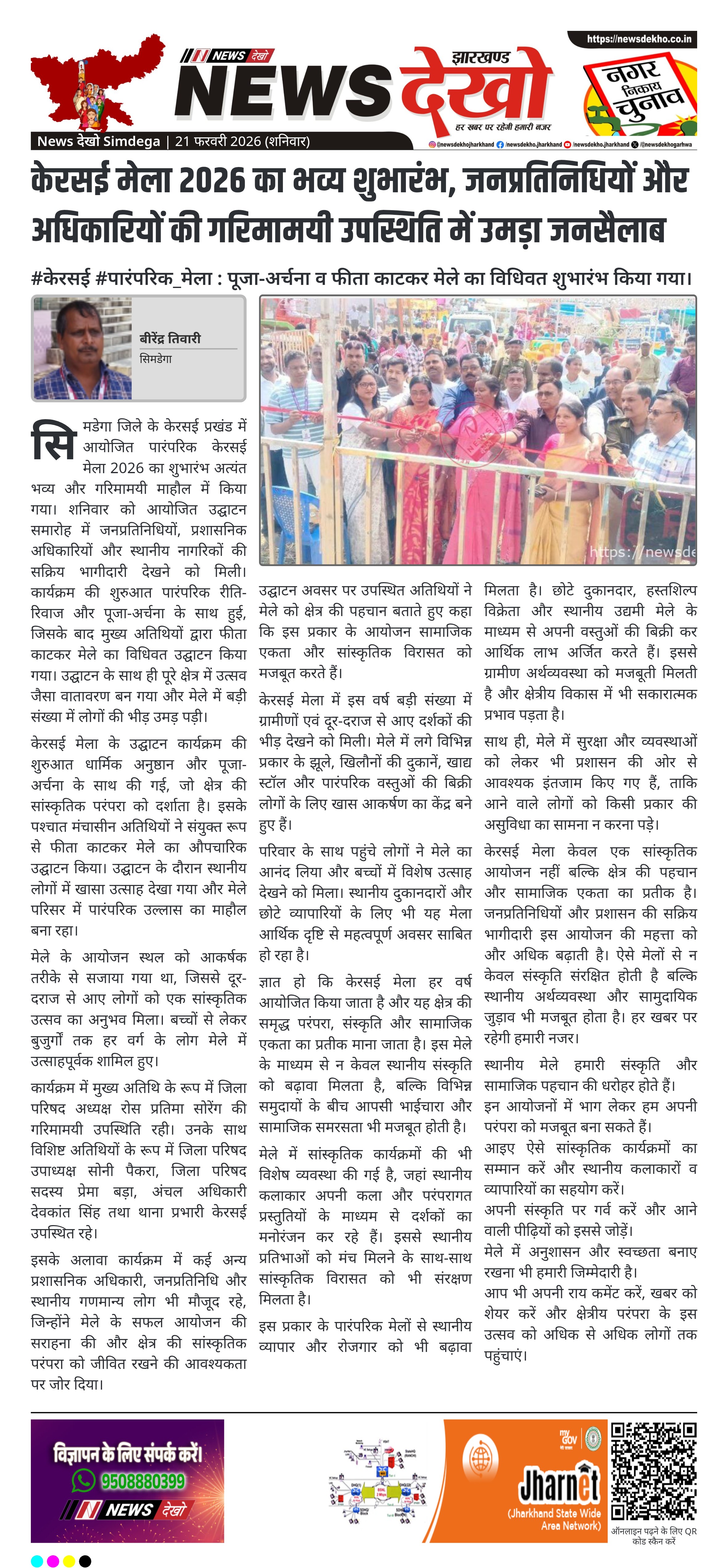 - 21 फरवरी 2026 को केरसई प्रखंड में पारंपरिक मेले का भव्य उद्घाटन।