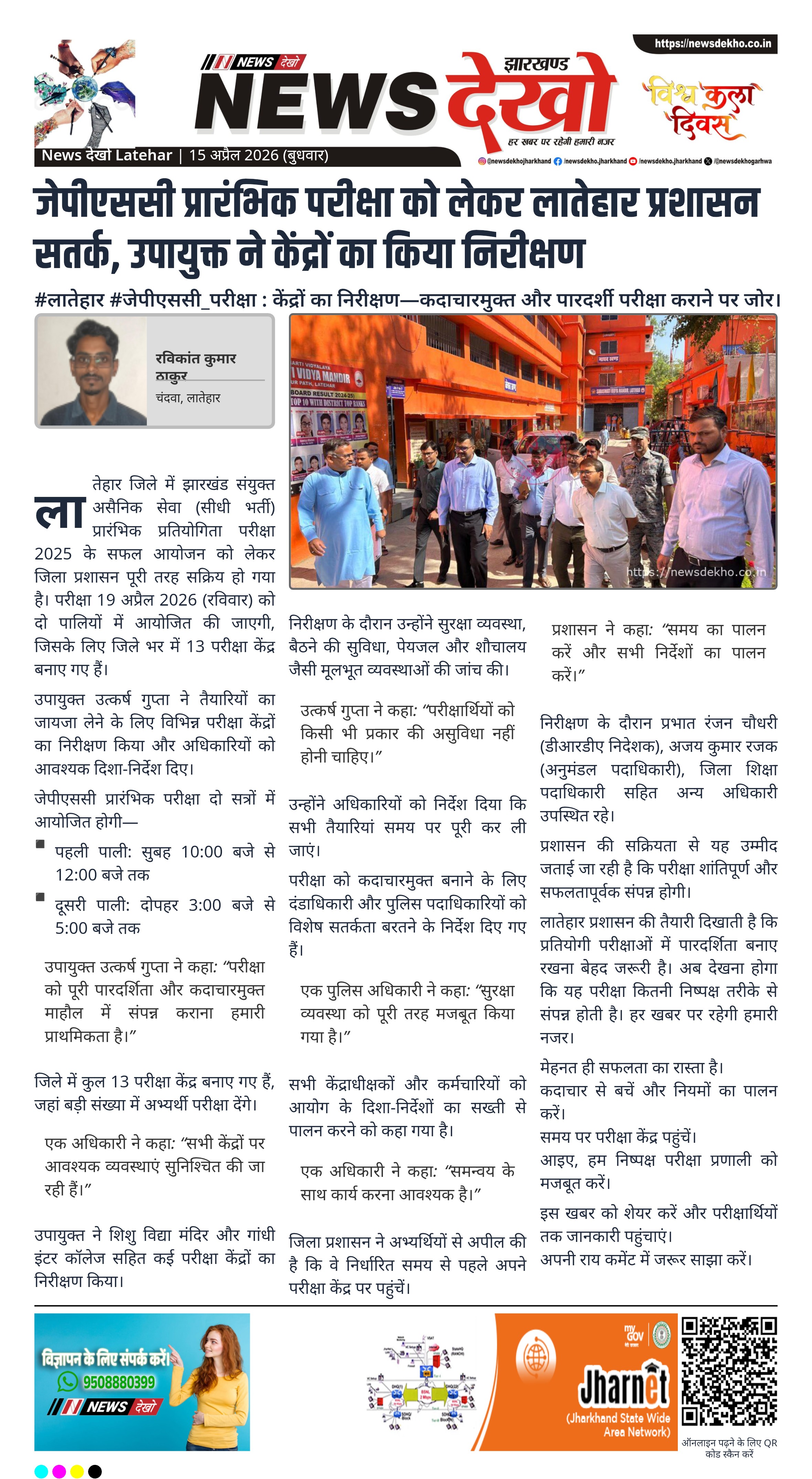 #लातेहार #जेपीएससी_परीक्षा : केंद्रों का निरीक्षण—कदाचारमुक्त और पारदर्शी परीक्षा कराने पर जोर।