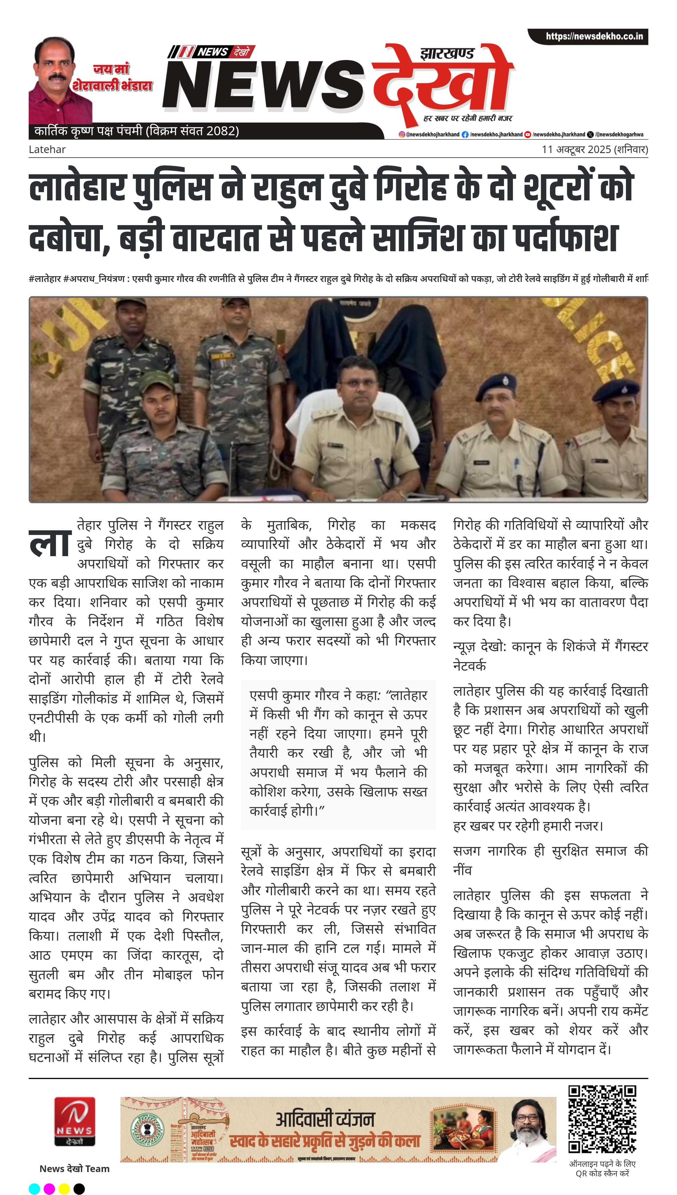 एसपी कुमार गौरव ने कहा: “लातेहार में किसी भी गैंग को कानून से ऊपर नहीं रहने दिया जाएगा। हमने पूरी तैयारी कर रखी है, और जो भी अपराधी समाज में भय फैलाने की कोशिश करेगा, उसके खिलाफ सख्त कार्रवाई होगी।”