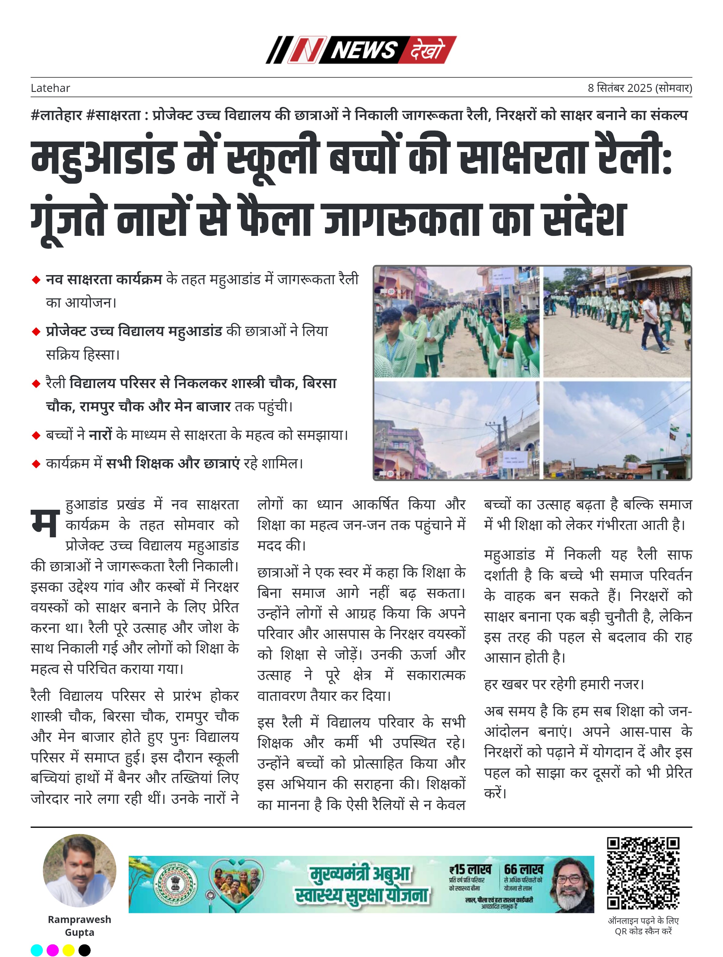 महुआडांड में निकली यह रैली साफ दर्शाती है कि बच्चे भी समाज परिवर्तन के वाहक बन सकते हैं। निरक्षरों को साक्षर बनाना एक बड़ी चुनौती है, लेकिन इस तरह की पहल से बदलाव की राह आसान होती है।