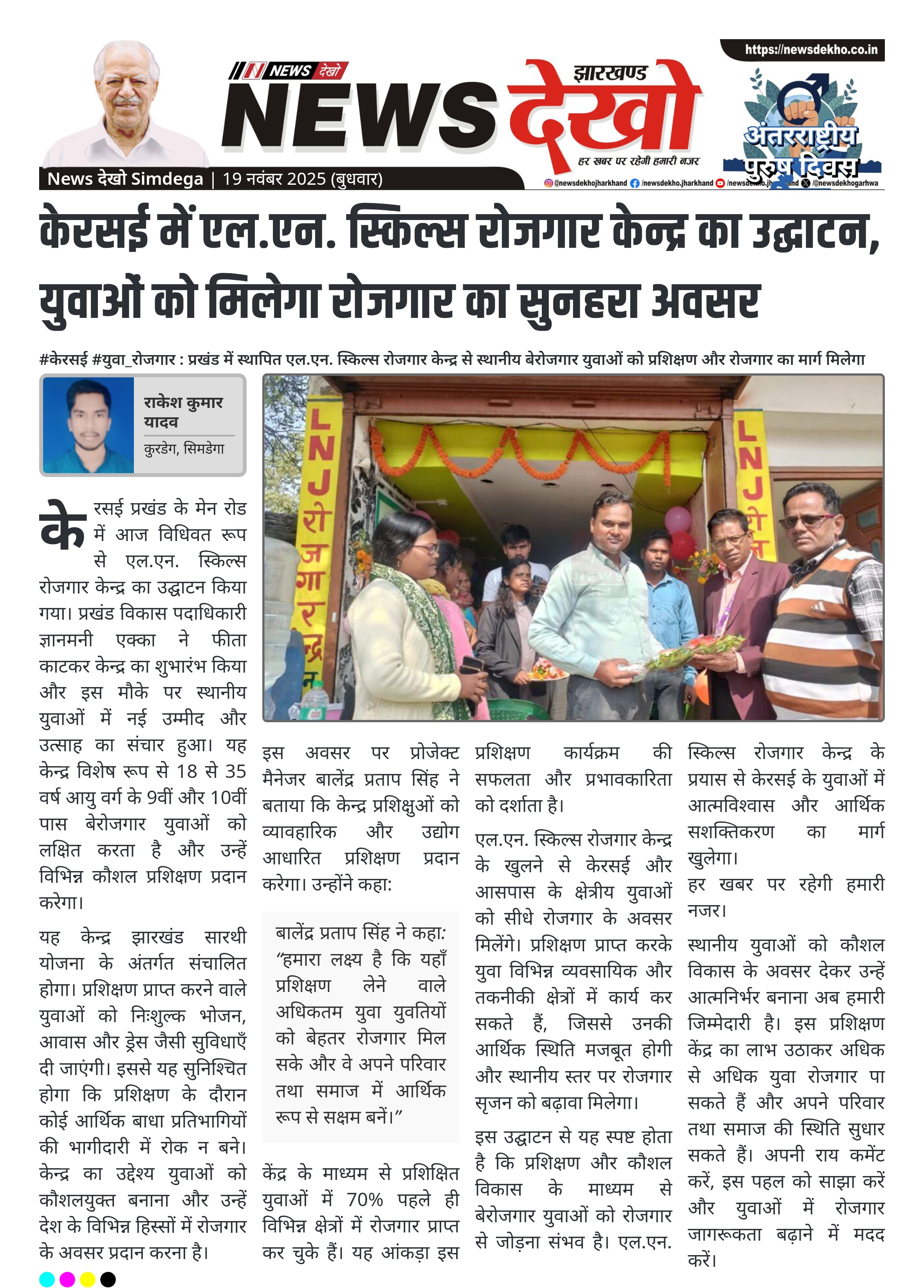 न्यूज़ देखो: एल.एन. स्किल्स रोजगार केन्द्र से क्षेत्रीय युवाओं को मिलेगा आत्मनिर्भर बनने का अवसर