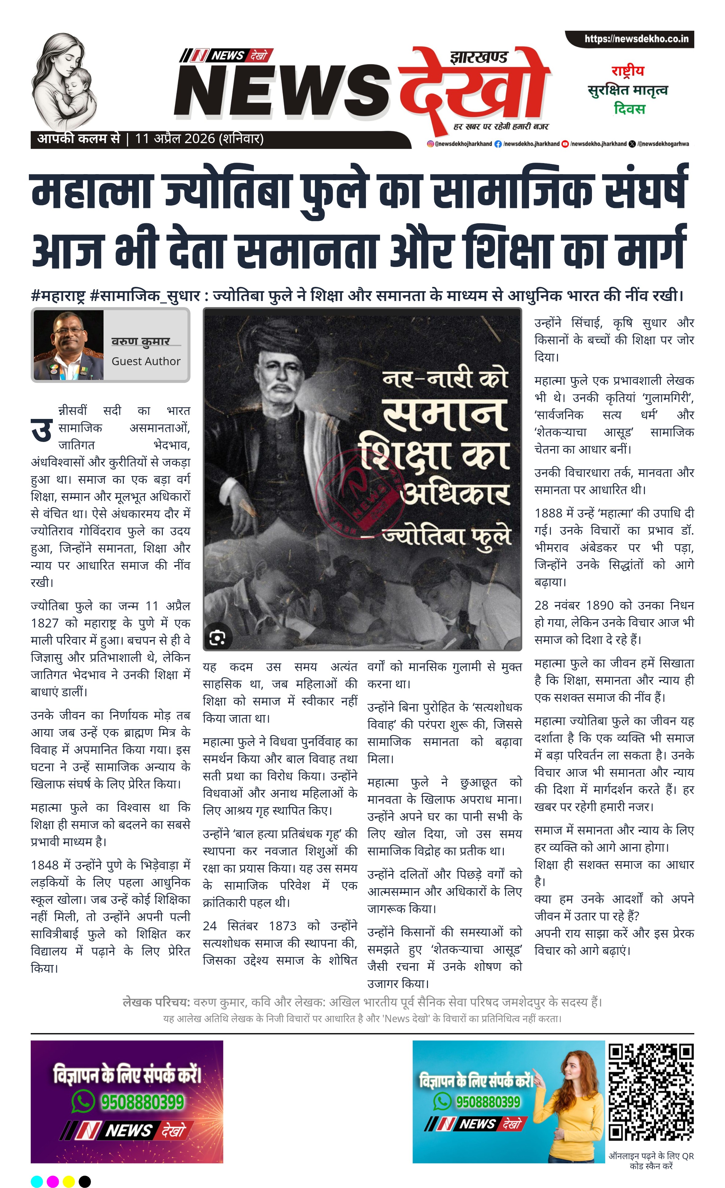 महात्मा फुले का जीवन हमें सिखाता है कि शिक्षा, समानता और न्याय ही एक सशक्त समाज की नींव हैं।