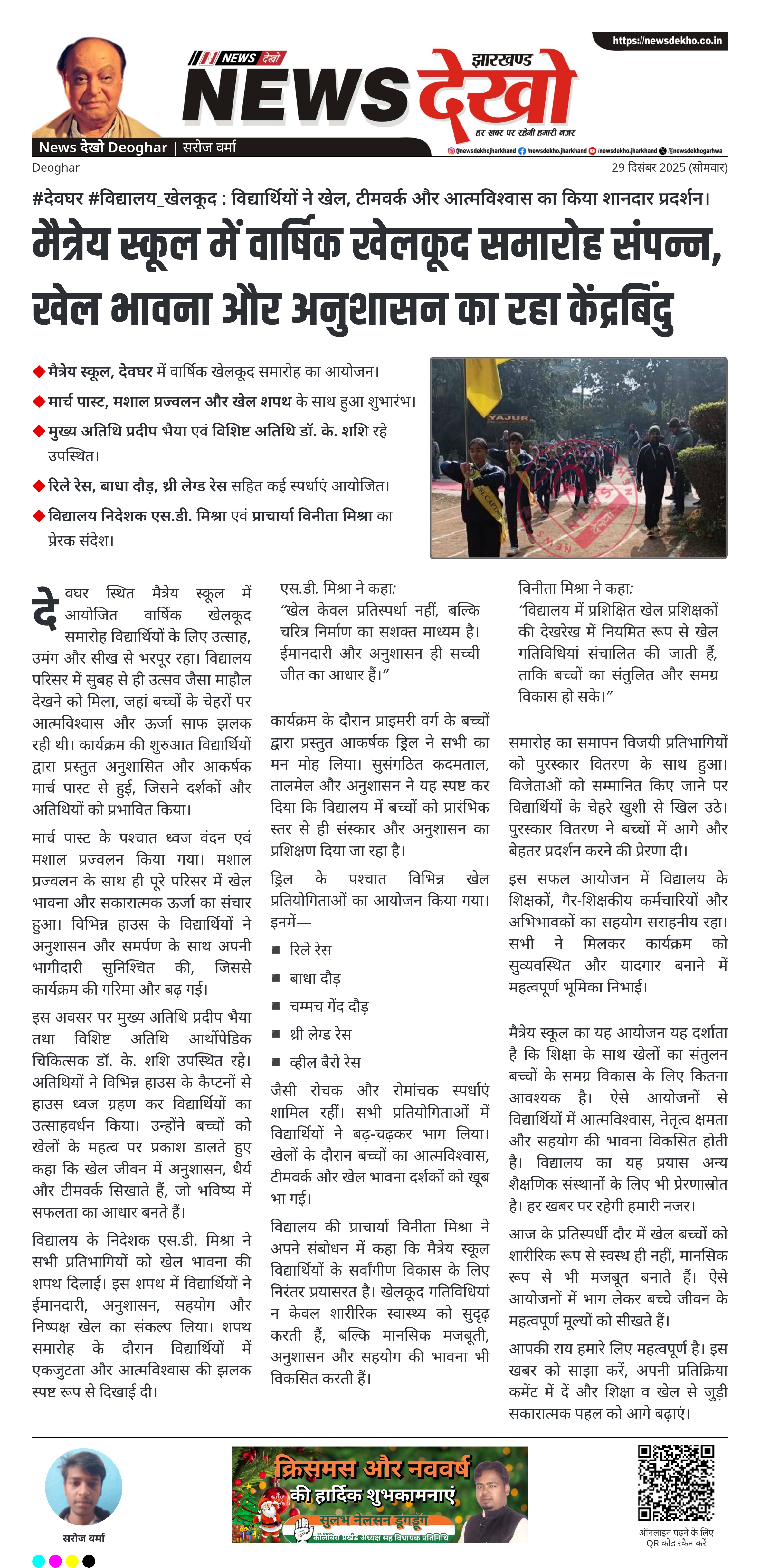 - मैत्रेय स्कूल, देवघर में वार्षिक खेलकूद समारोह का आयोजन।