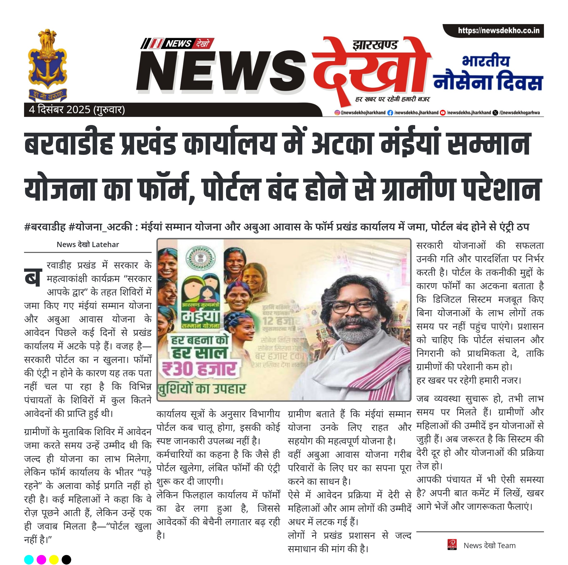 सरकारी योजनाओं की सफलता उनकी गति और पारदर्शिता पर निर्भर करती है। पोर्टल के तकनीकी मुद्दों के कारण फॉर्मों का अटकना बताता है कि डिजिटल सिस्टम मजबूत किए बिना योजनाओं के लाभ लोगों तक समय पर नहीं पहुंच पाएंगे। प्रशासन को चाहिए कि पोर्टल संचालन और निगरानी को प्राथमिकता दे, ताकि ग्रामीणों की परेशानी कम हो।
