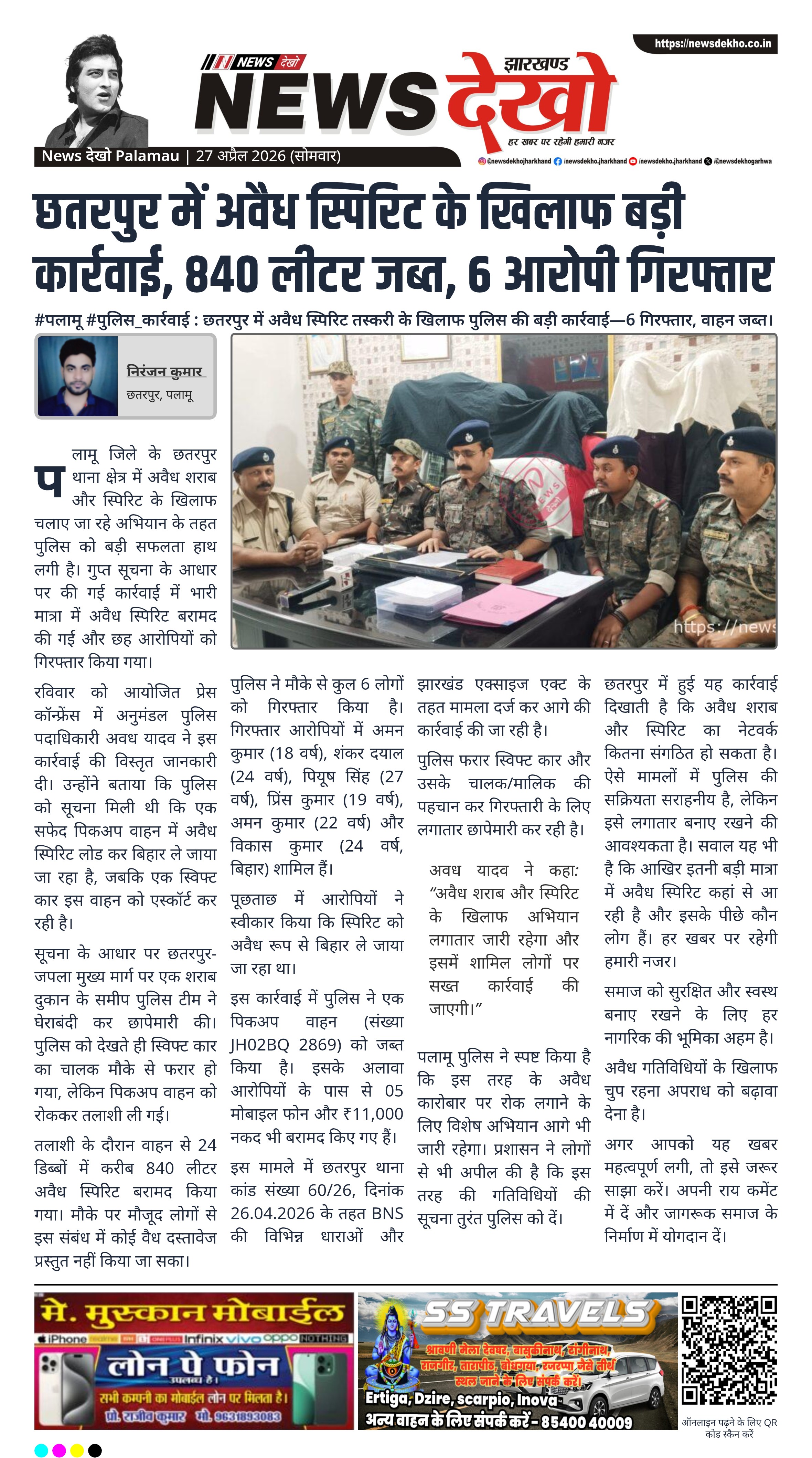 अवध यादव ने कहा: “अवैध शराब और स्पिरिट के खिलाफ अभियान लगातार जारी रहेगा और इसमें शामिल लोगों पर सख्त कार्रवाई की जाएगी।”