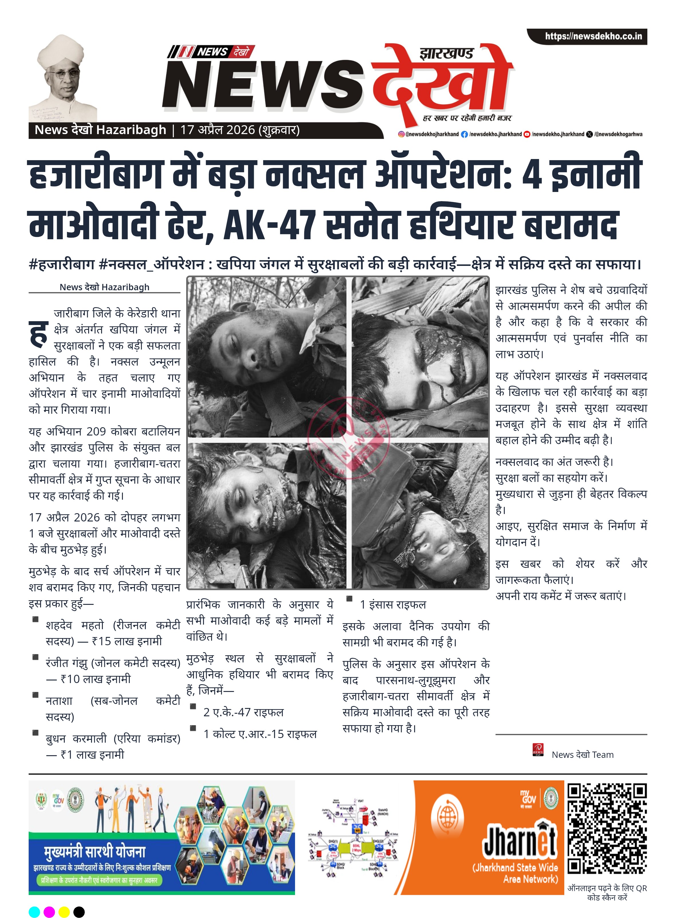 - संयुक्त बलों ने 4 इनामी माओवादियों को किया ढेर।