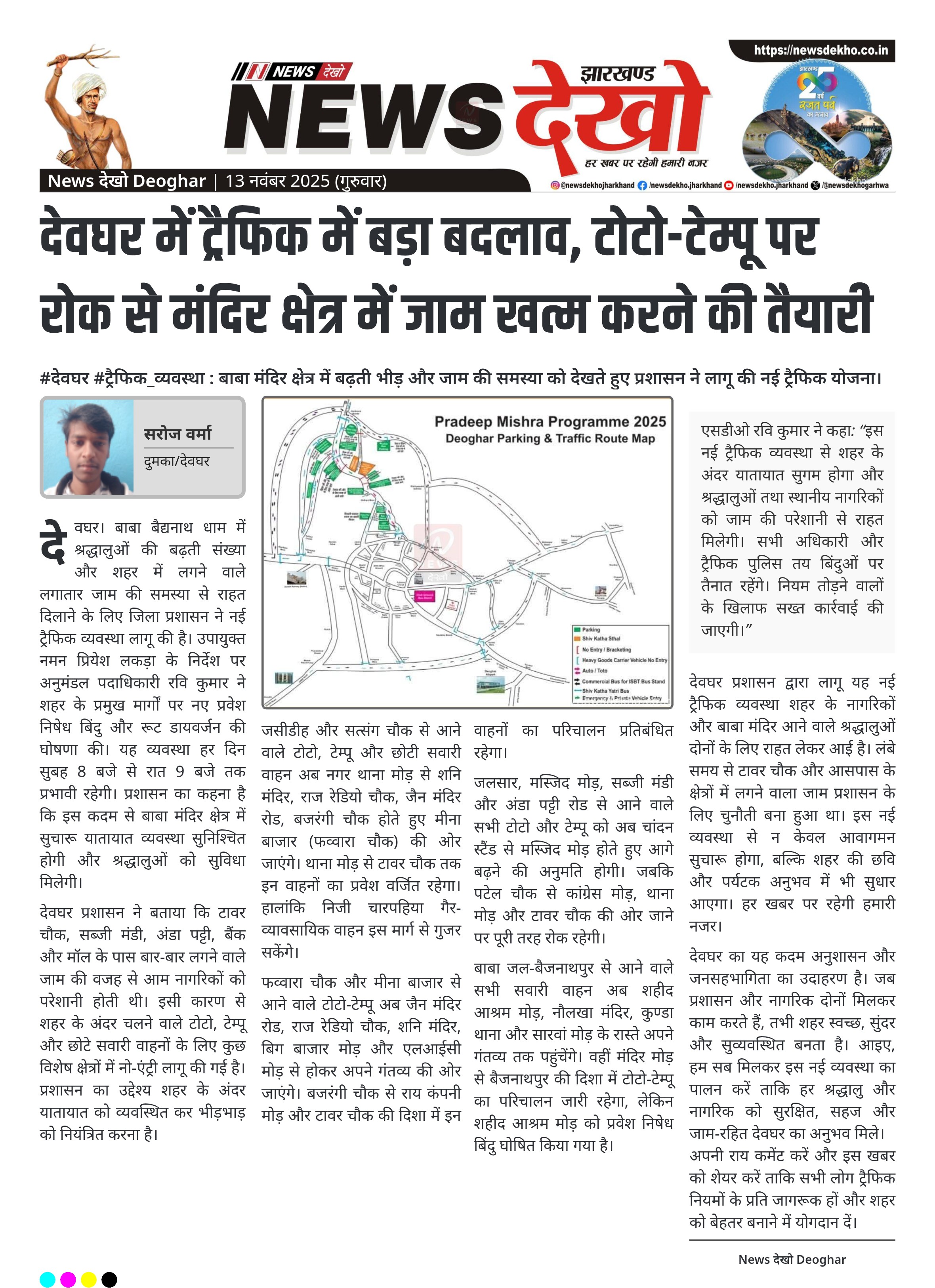 - देवघर प्रशासन ने शहर में नई ट्रैफिक व्यवस्था लागू की।