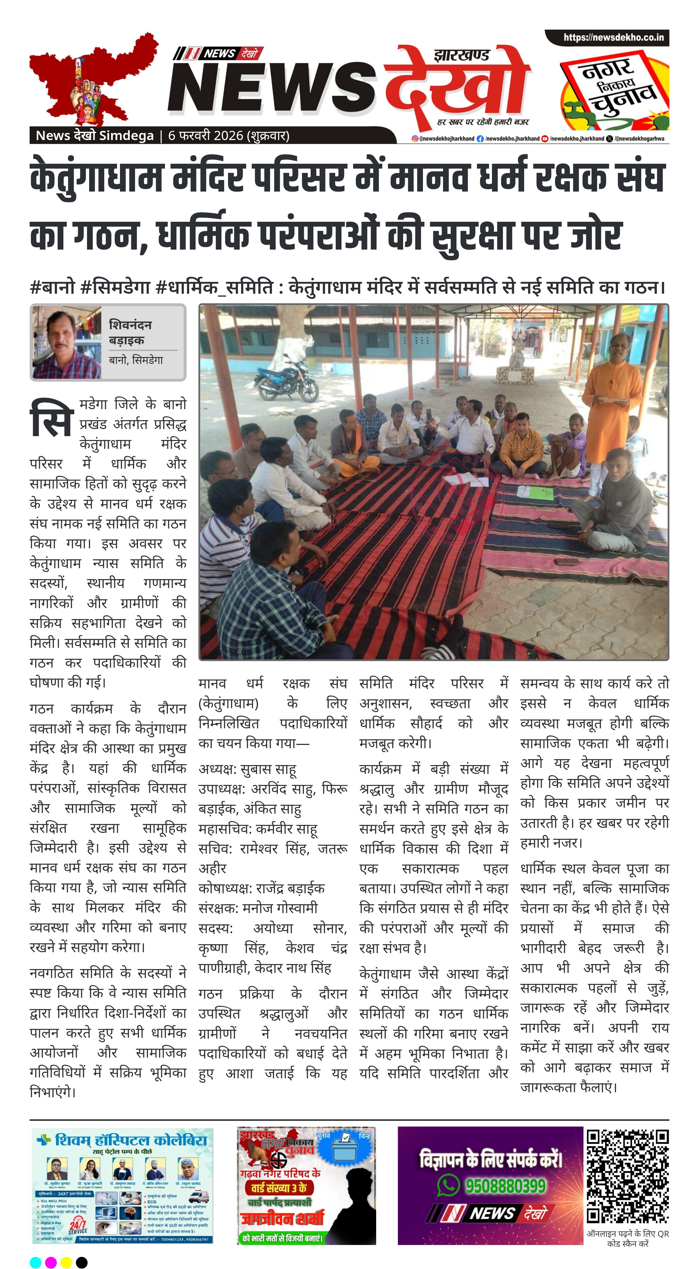 • केतुंगाधाम मंदिर परिसर में सर्वसम्मति से समिति का गठन।
