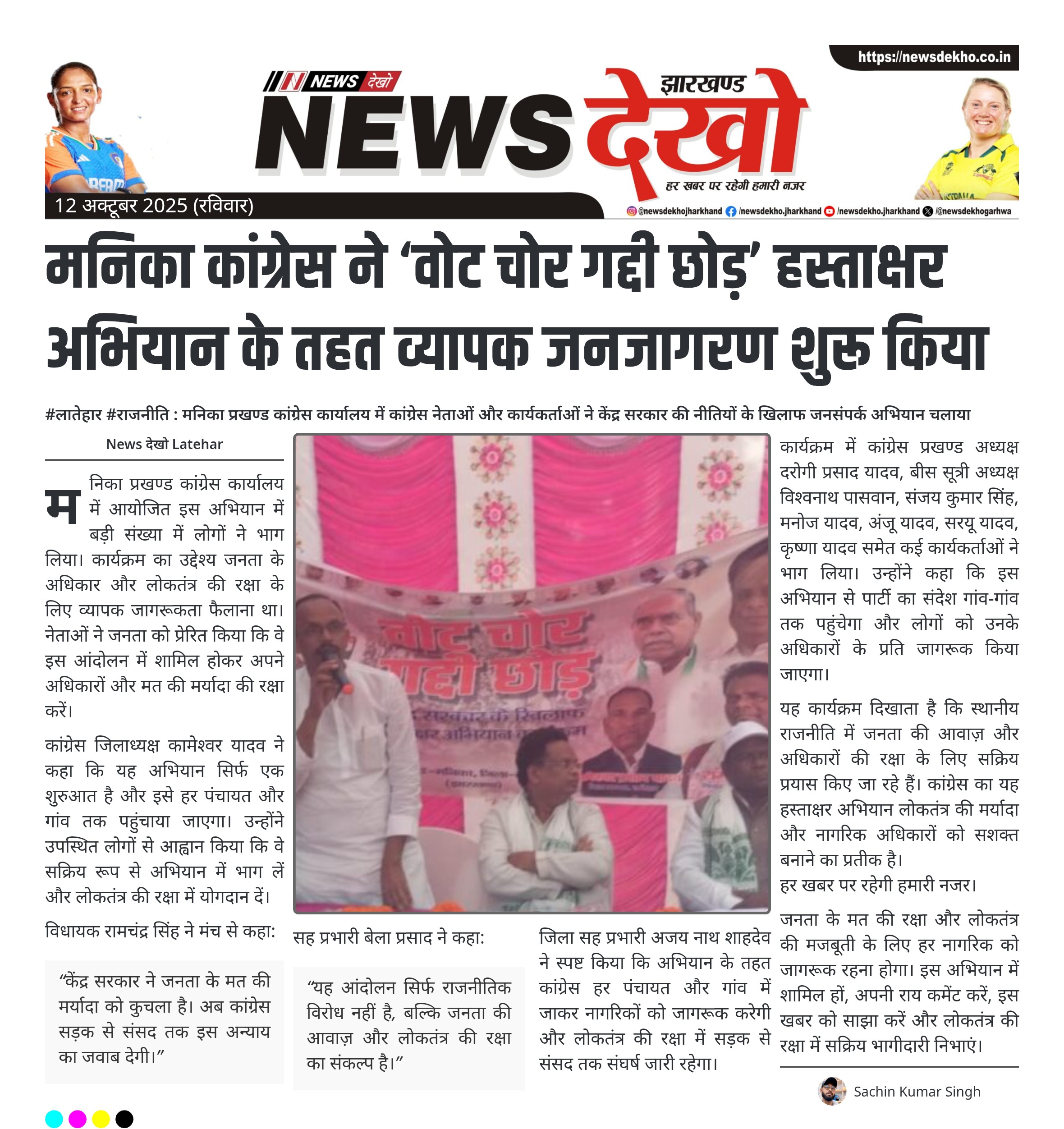 न्यूज़ देखो: मनिका में कांग्रेस का ‘वोट चोर गद्दी छोड़’ अभियान लोकतंत्र और जनजागरण का प्रतीक