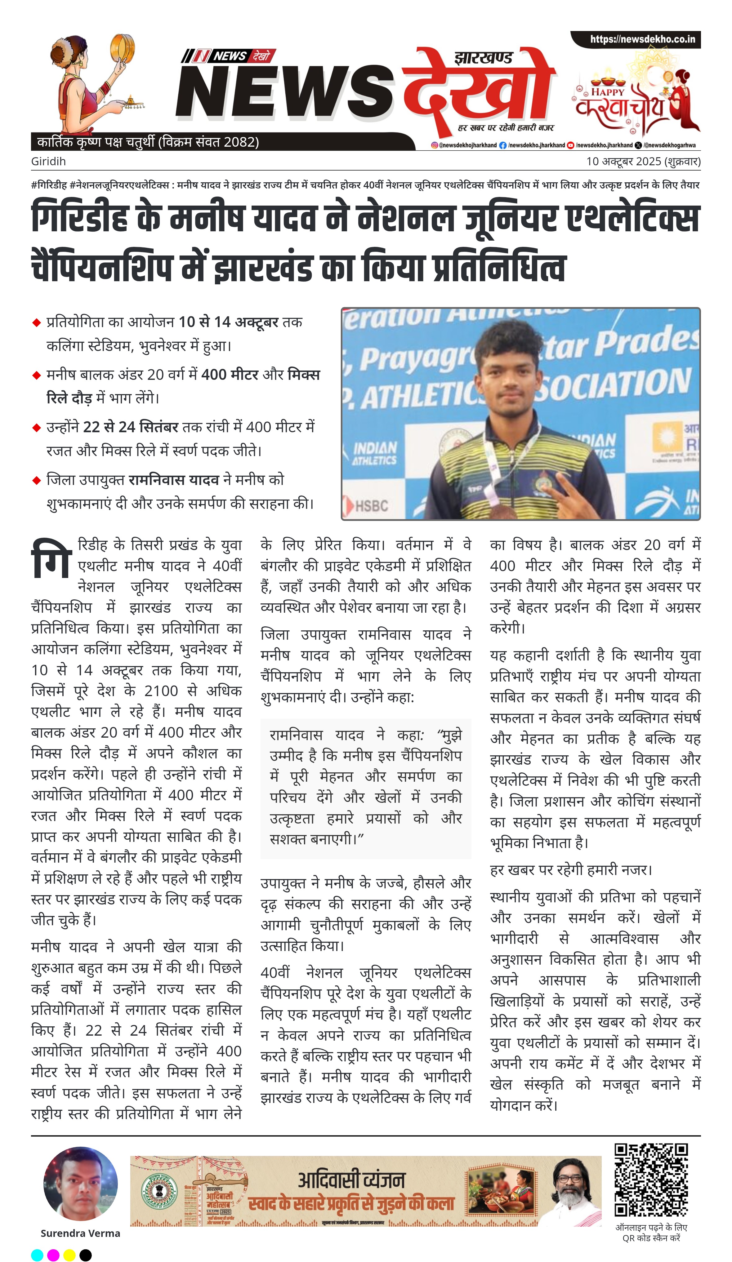 न्यूज़ देखो: गिरिडीह के युवा एथलीट मनीष यादव का राष्ट्रीय मंच पर प्रभाव