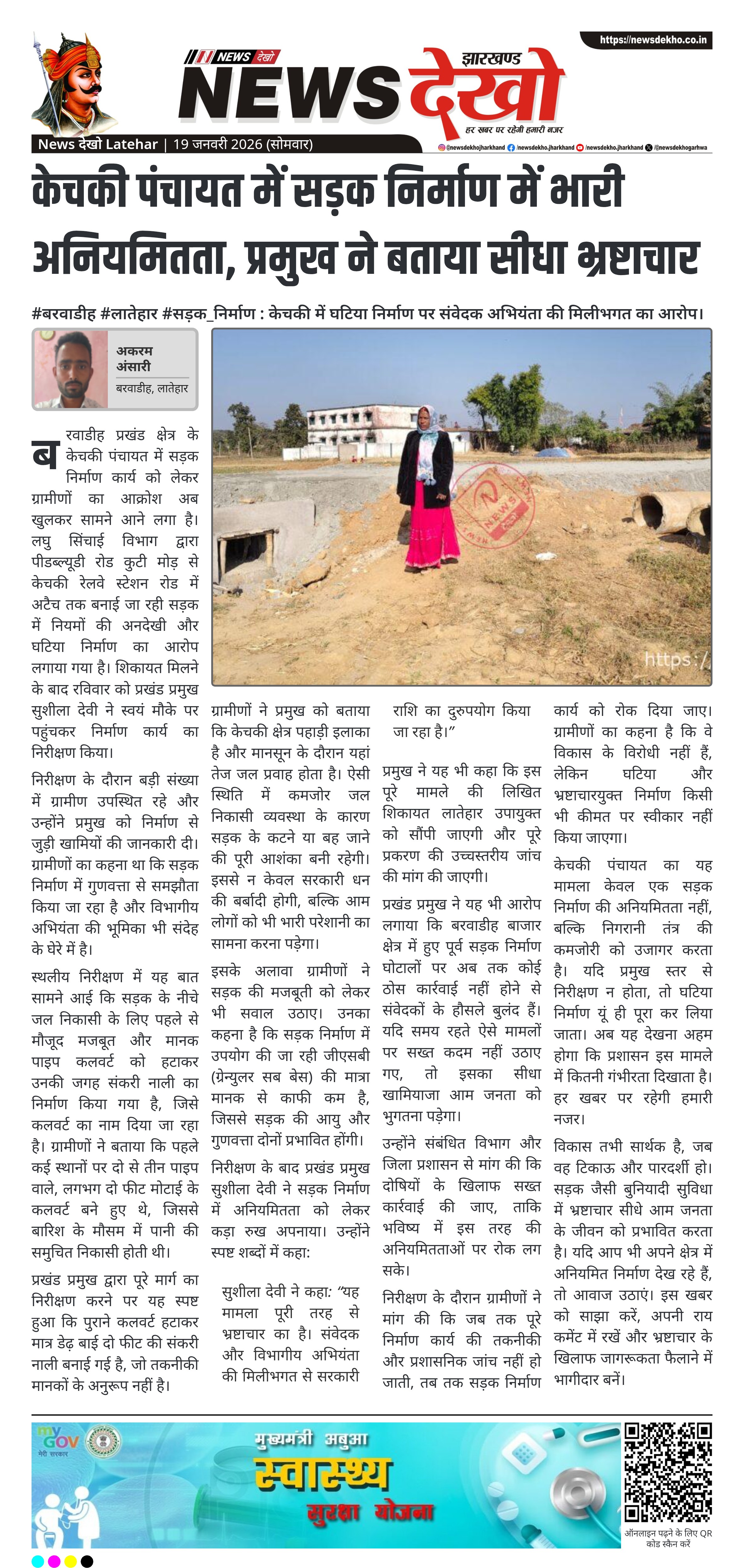 - केचकी पंचायत में लघु सिंचाई विभाग की सड़क योजना में अनियमितता का आरोप।