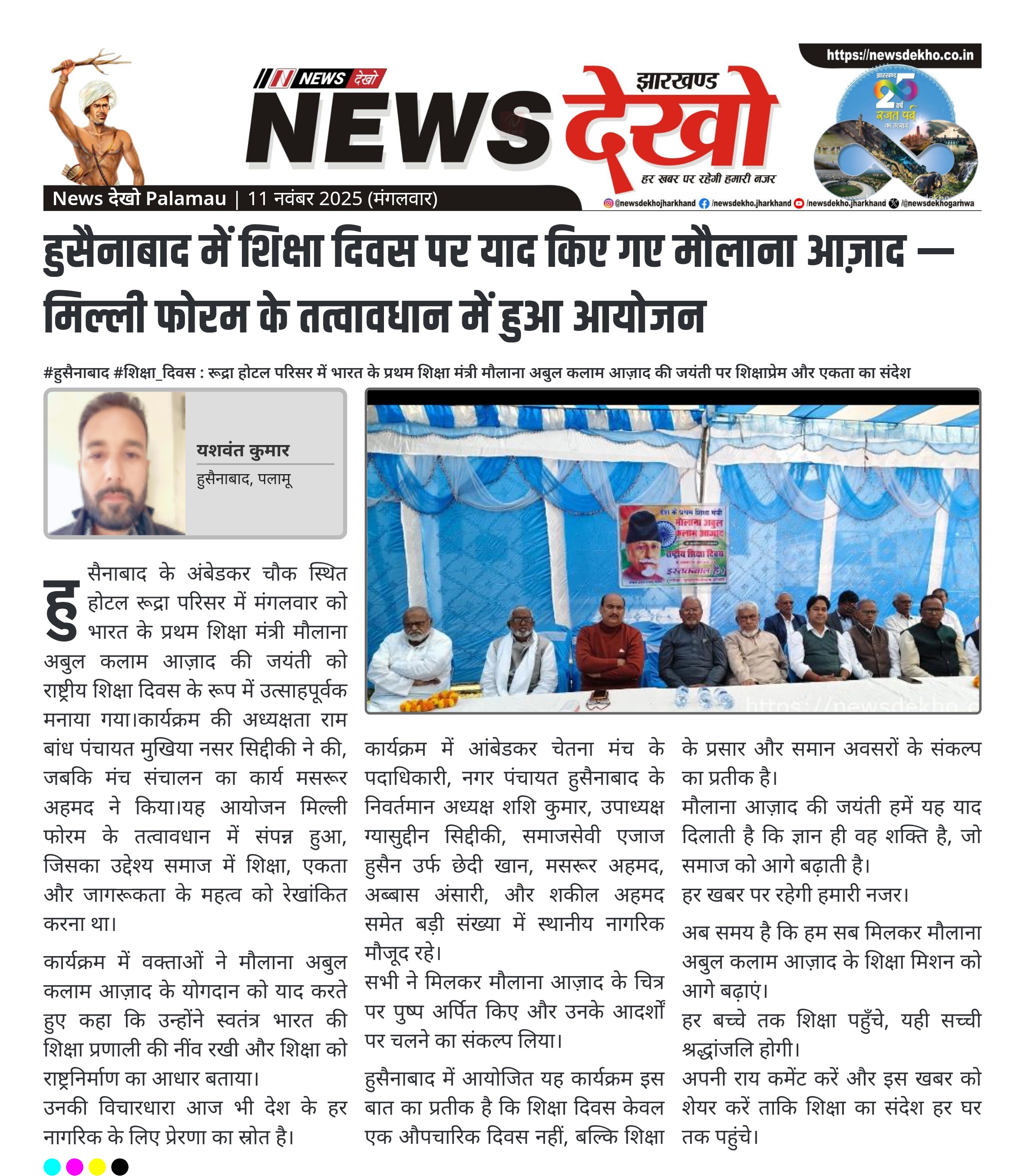 हुसैनाबाद में आयोजित यह कार्यक्रम इस बात का प्रतीक है कि शिक्षा दिवस केवल एक औपचारिक दिवस नहीं, बल्कि शिक्षा के प्रसार और समान अवसरों के संकल्प का प्रतीक है।