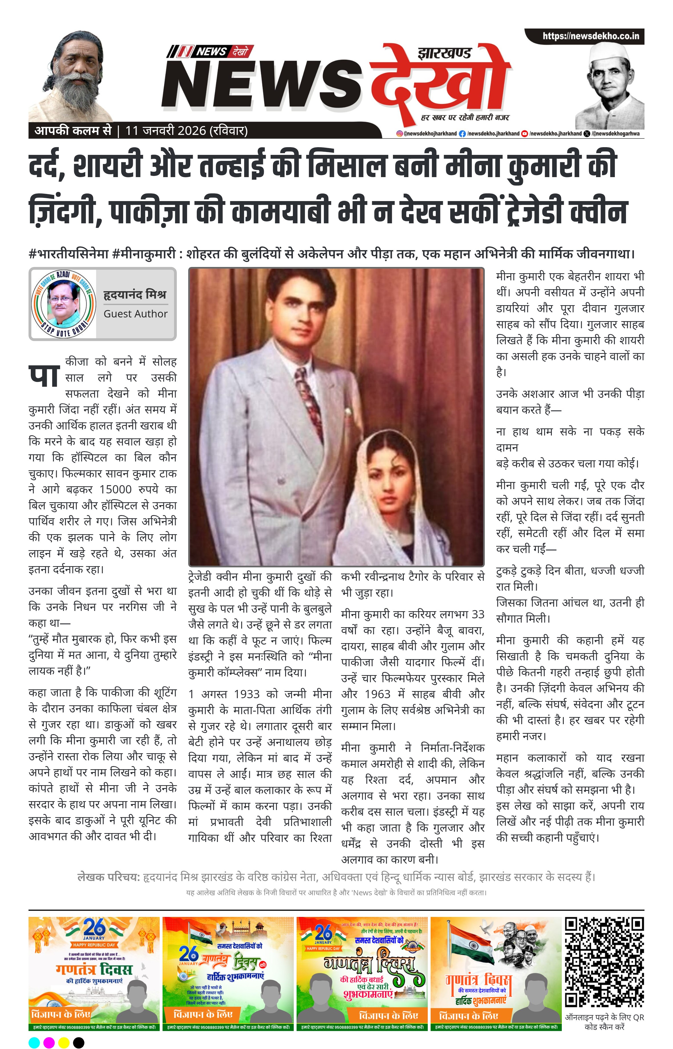 मीना कुमारी की कहानी हमें यह सिखाती है कि चमकती दुनिया के पीछे कितनी गहरी तन्हाई छुपी होती है। उनकी ज़िंदगी केवल अभिनय की नहीं, बल्कि संघर्ष, संवेदना और टूटन की भी दास्तां है। हर खबर पर रहेगी हमारी नजर।