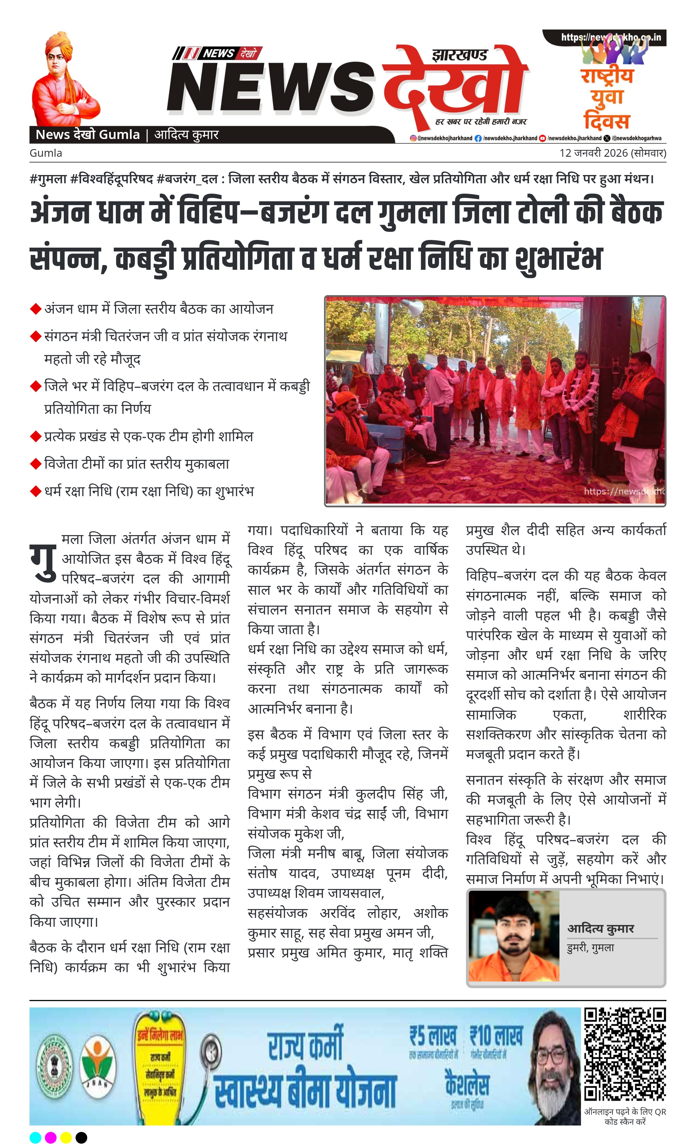 - जिले में विहिप–बजरंग दल के तत्वावधान में कबड्डी प्रतियोगिता आयोजित करने का निर्णय
