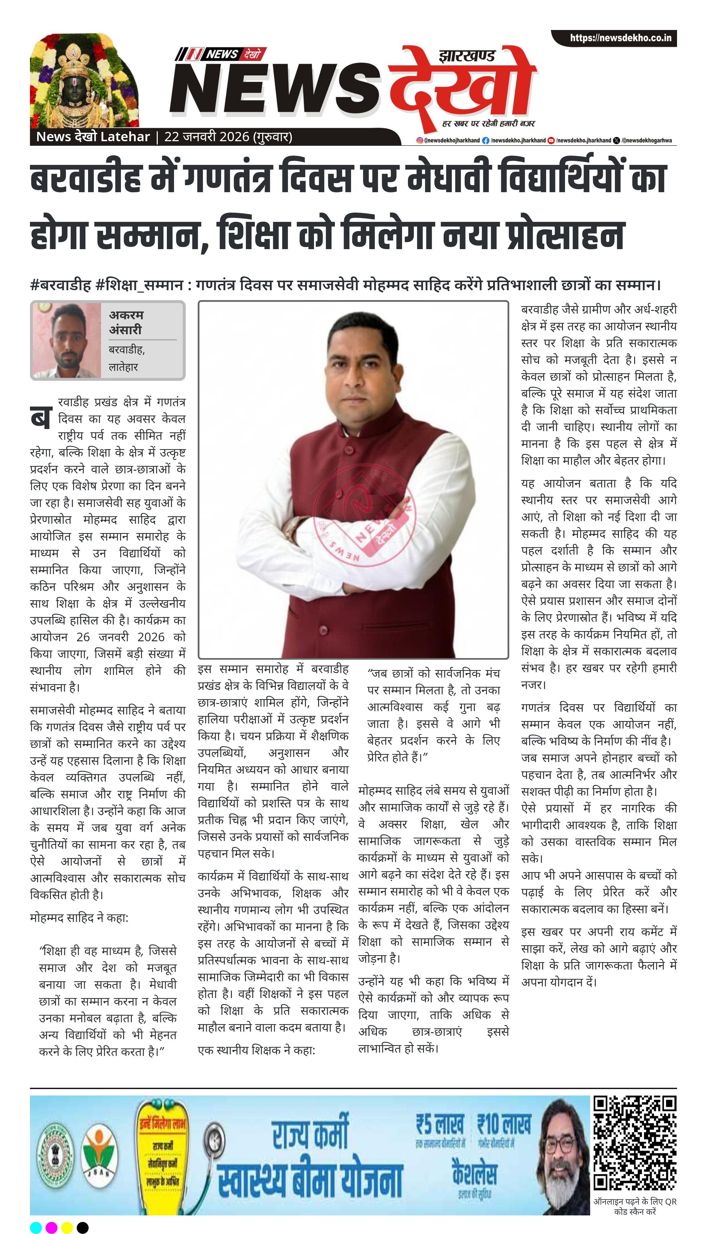 #बरवाडीह #शिक्षा_सम्मान : गणतंत्र दिवस पर समाजसेवी मोहम्मद साहिद करेंगे प्रतिभाशाली छात्रों का सम्मान।
