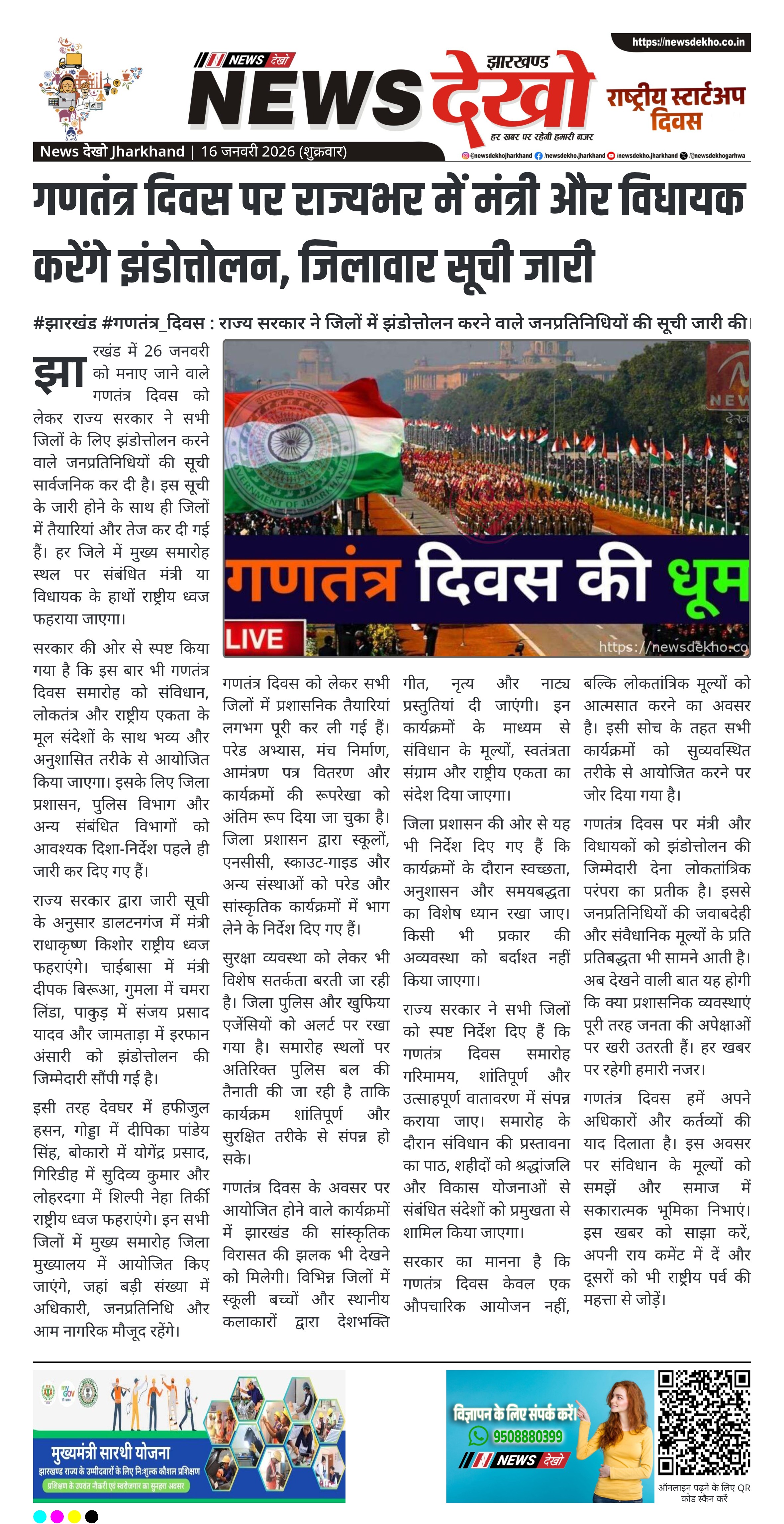 - राज्यभर में मंत्री और विधायक करेंगे झंडोत्तोलन।