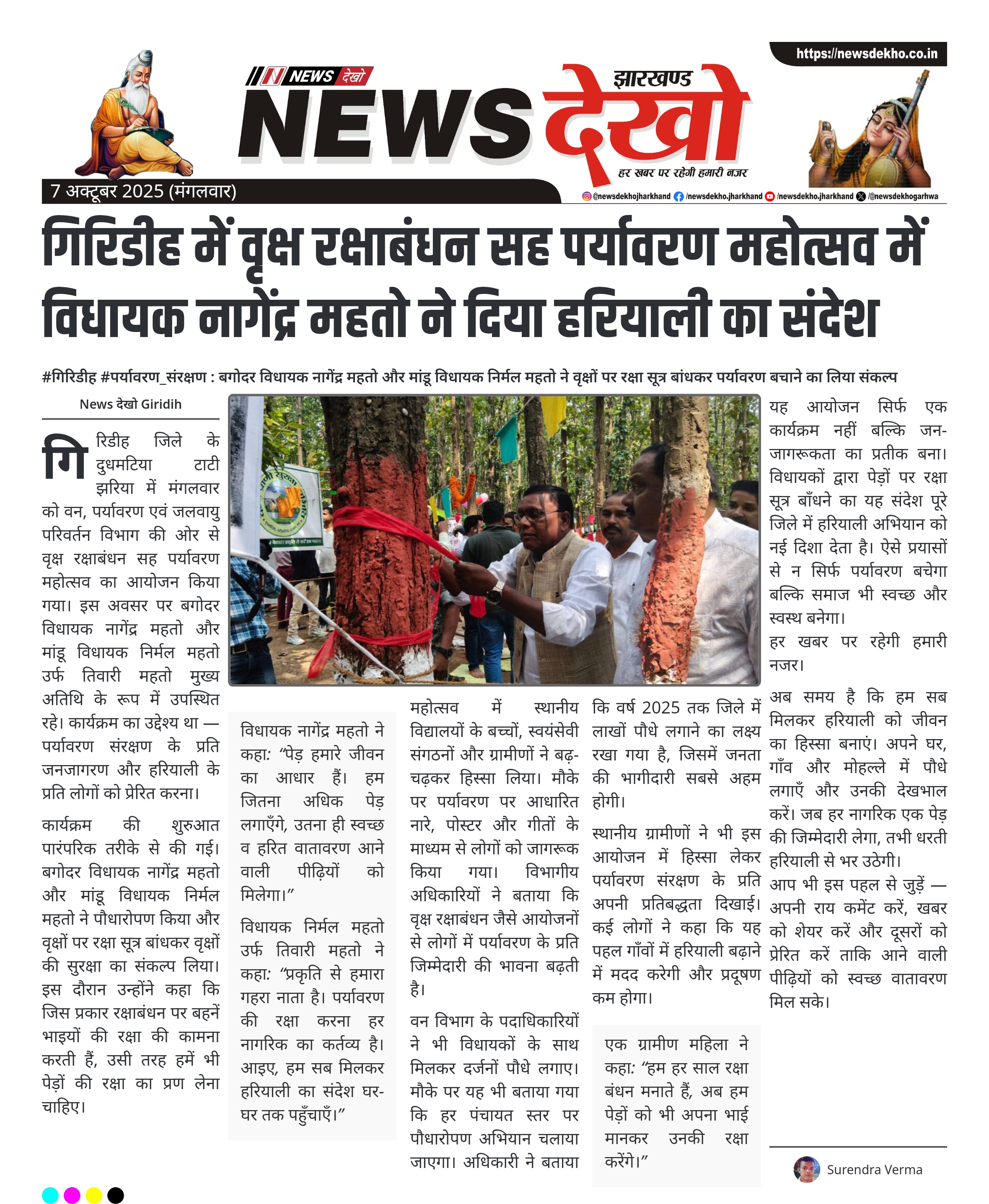गिरिडीह में वृक्ष रक्षाबंधन सह पर्यावरण महोत्सव में विधायक नागेंद्र महतो ने दिया हरियाली का संदेश