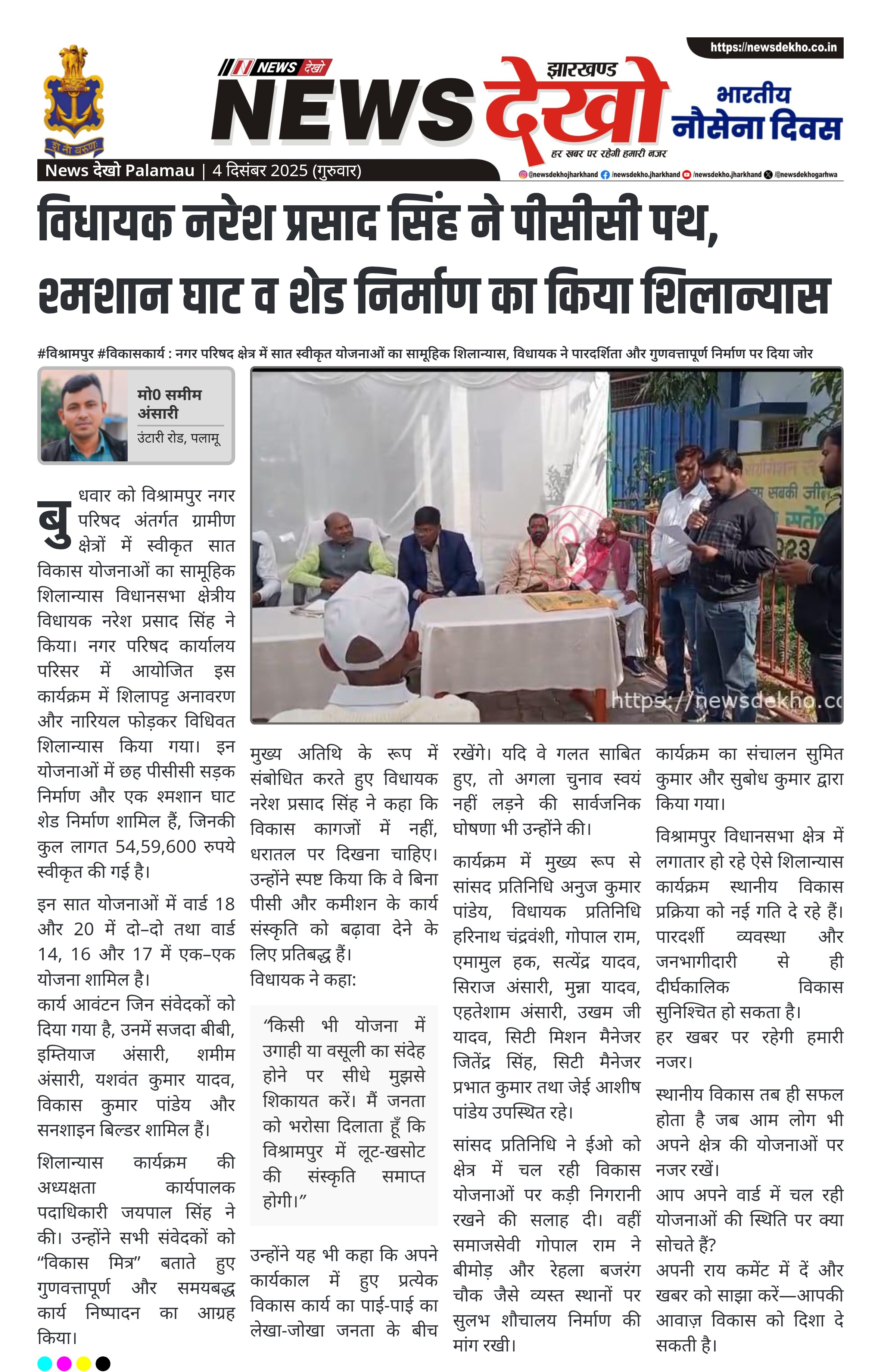 - विश्रामपुर विधायक नरेश प्रसाद सिंह ने कुल 7 निर्माण योजनाओं का सामूहिक शिलान्यास किया।