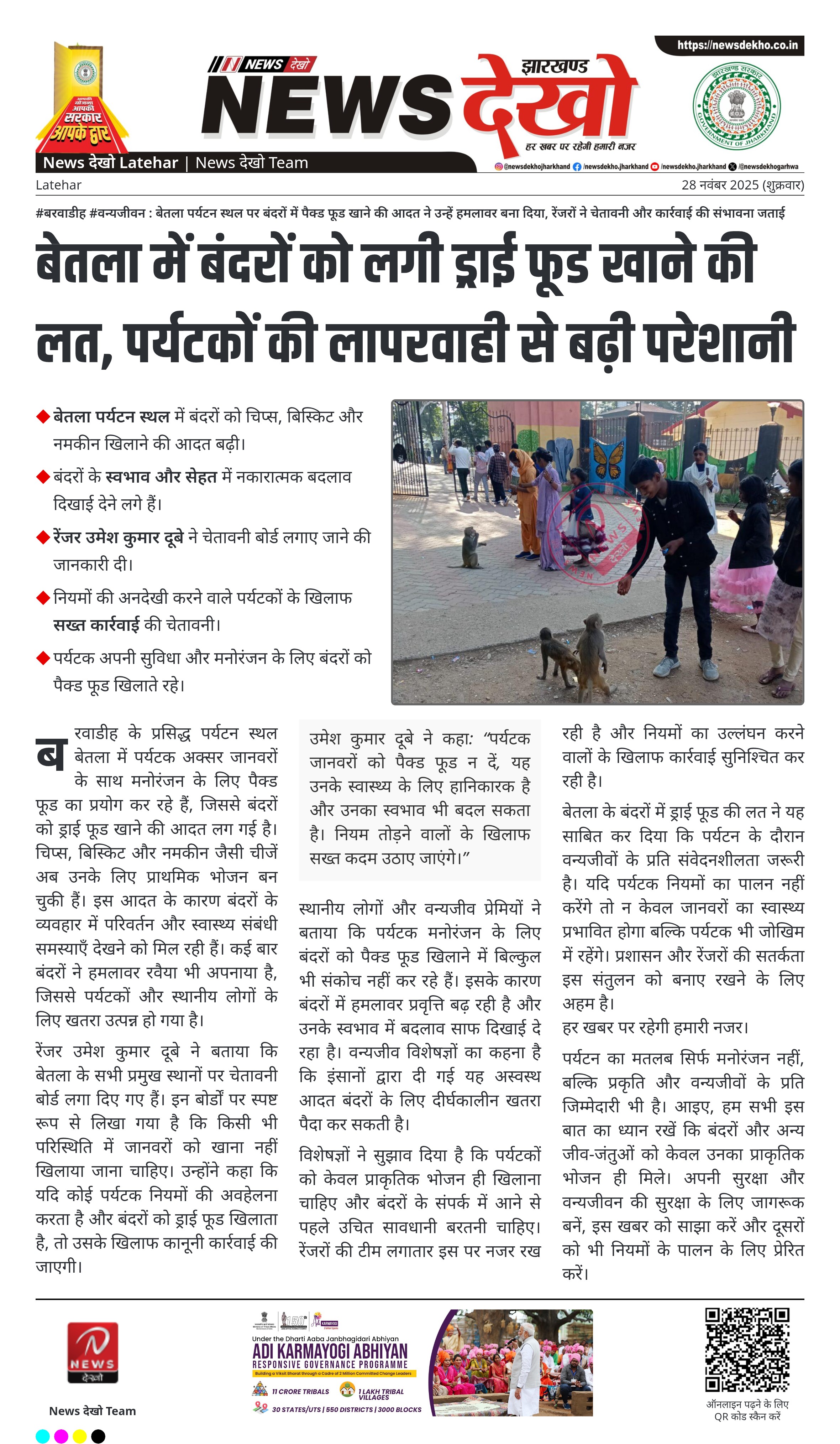 #बरवाडीह #वन्यजीवन : बेतला पर्यटन स्थल पर बंदरों में पैक्ड फूड खाने की आदत ने उन्हें हमलावर बना दिया, रेंजरों ने चेतावनी और कार्रवाई की संभावना जताई
