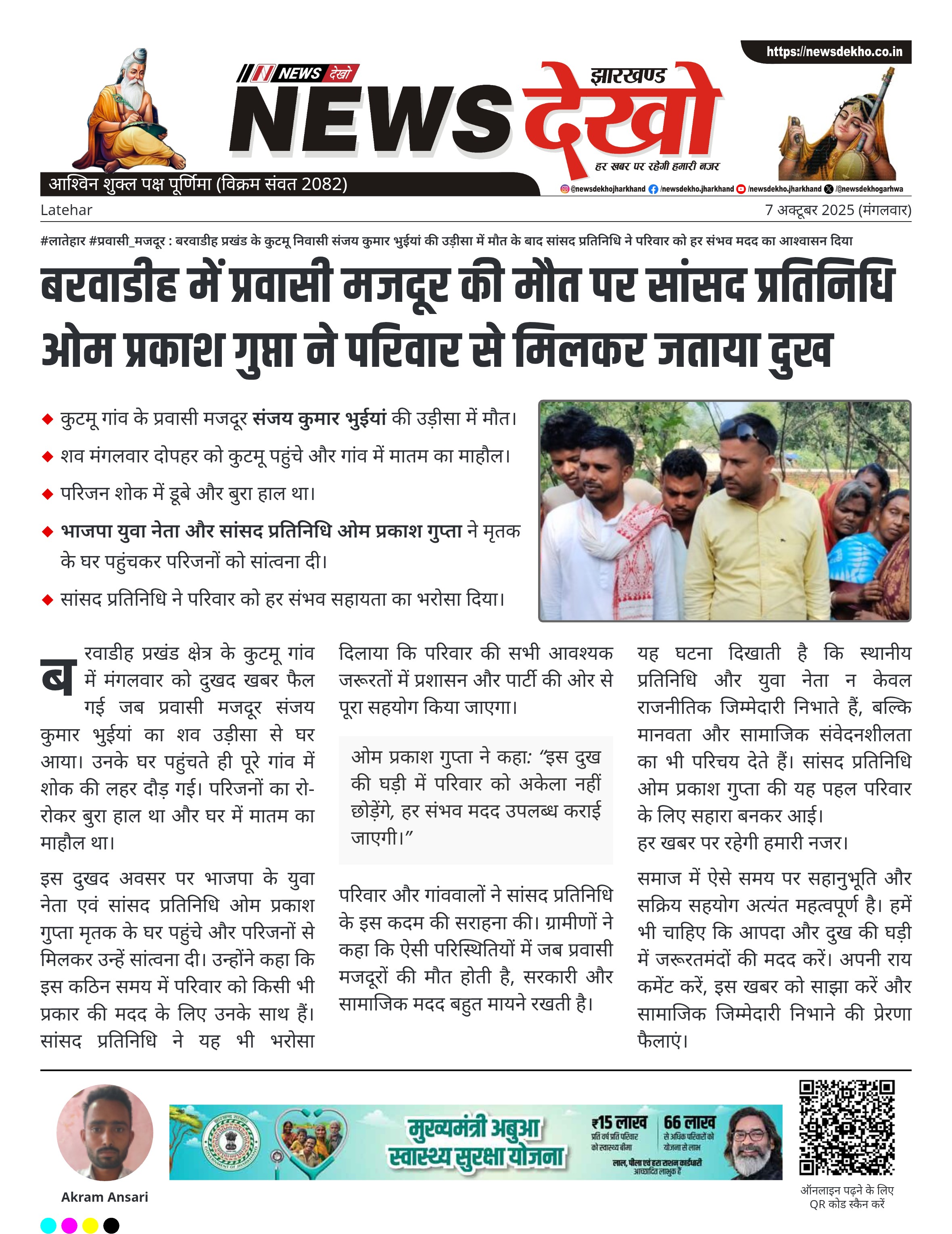 - भाजपा युवा नेता और सांसद प्रतिनिधि ओम प्रकाश गुप्ता ने मृतक के घर पहुंचकर परिजनों को सांत्वना दी।