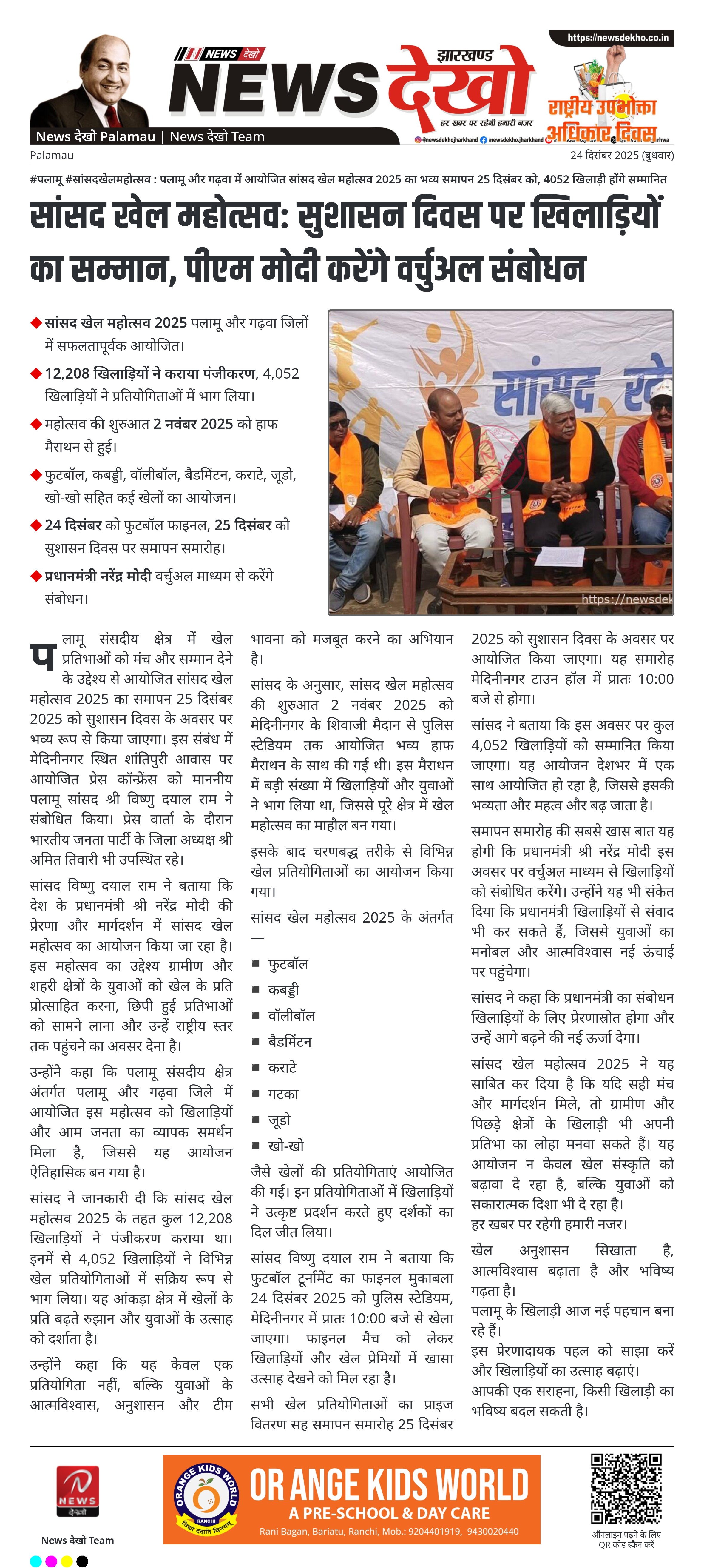 - सांसद खेल महोत्सव 2025 पलामू और गढ़वा जिलों में सफलतापूर्वक आयोजित।