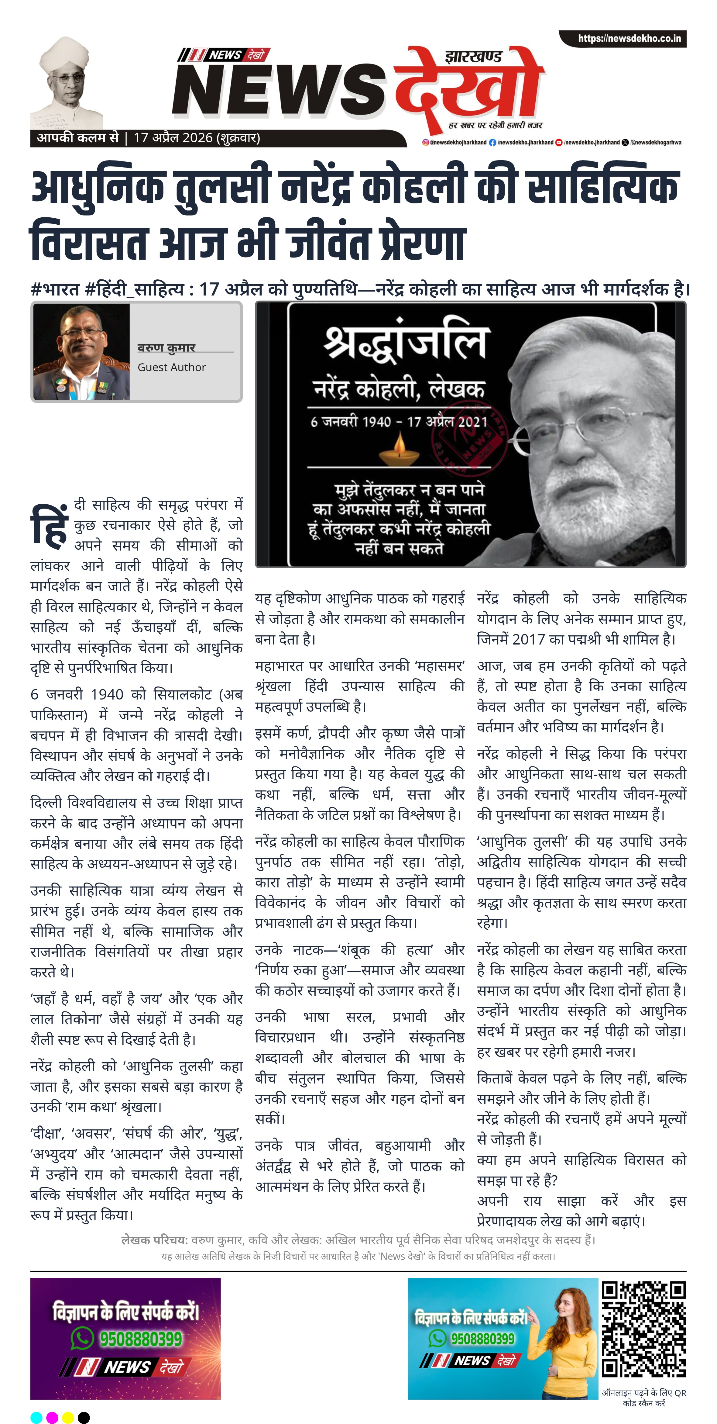 नरेंद्र कोहली का लेखन यह साबित करता है कि साहित्य केवल कहानी नहीं, बल्कि समाज का दर्पण और दिशा दोनों होता है। उन्होंने भारतीय संस्कृति को आधुनिक संदर्भ में प्रस्तुत कर नई पीढ़ी को जोड़ा। हर खबर पर रहेगी हमारी नजर।