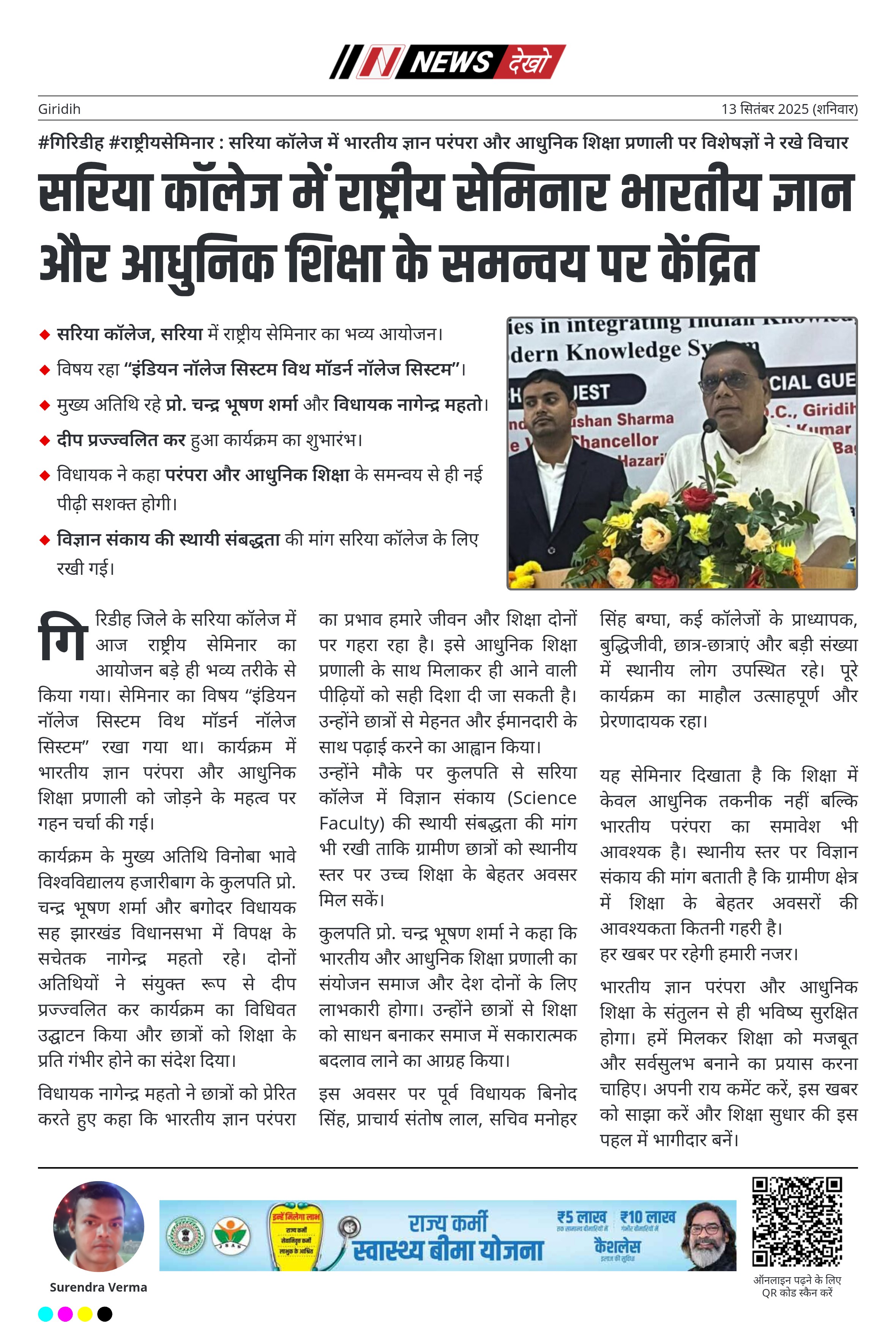 #गिरिडीह #राष्ट्रीयसेमिनार : सरिया कॉलेज में भारतीय ज्ञान परंपरा और आधुनिक शिक्षा प्रणाली पर विशेषज्ञों ने रखे विचार