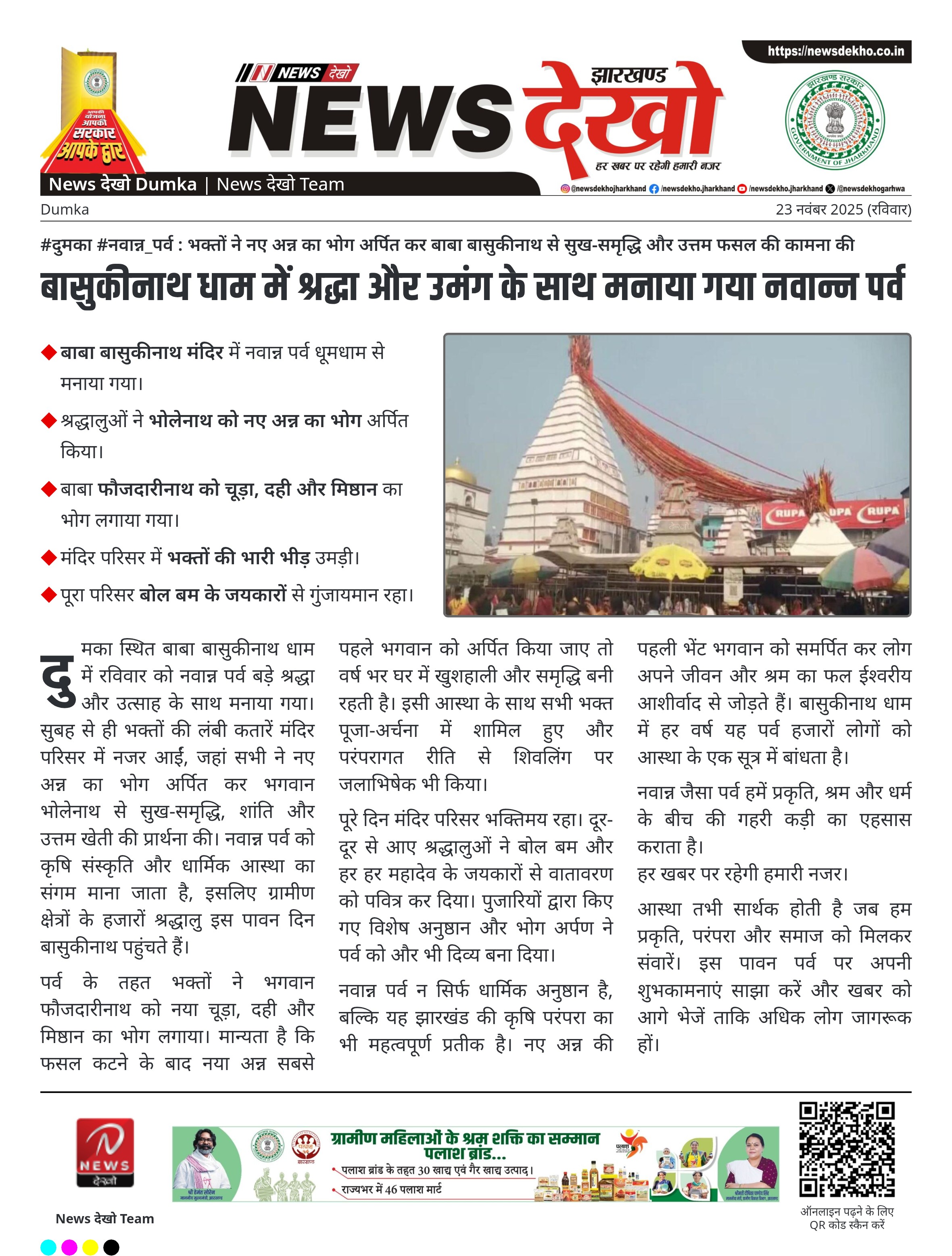 - बाबा बासुकीनाथ मंदिर में नवान्न पर्व धूमधाम से मनाया गया।