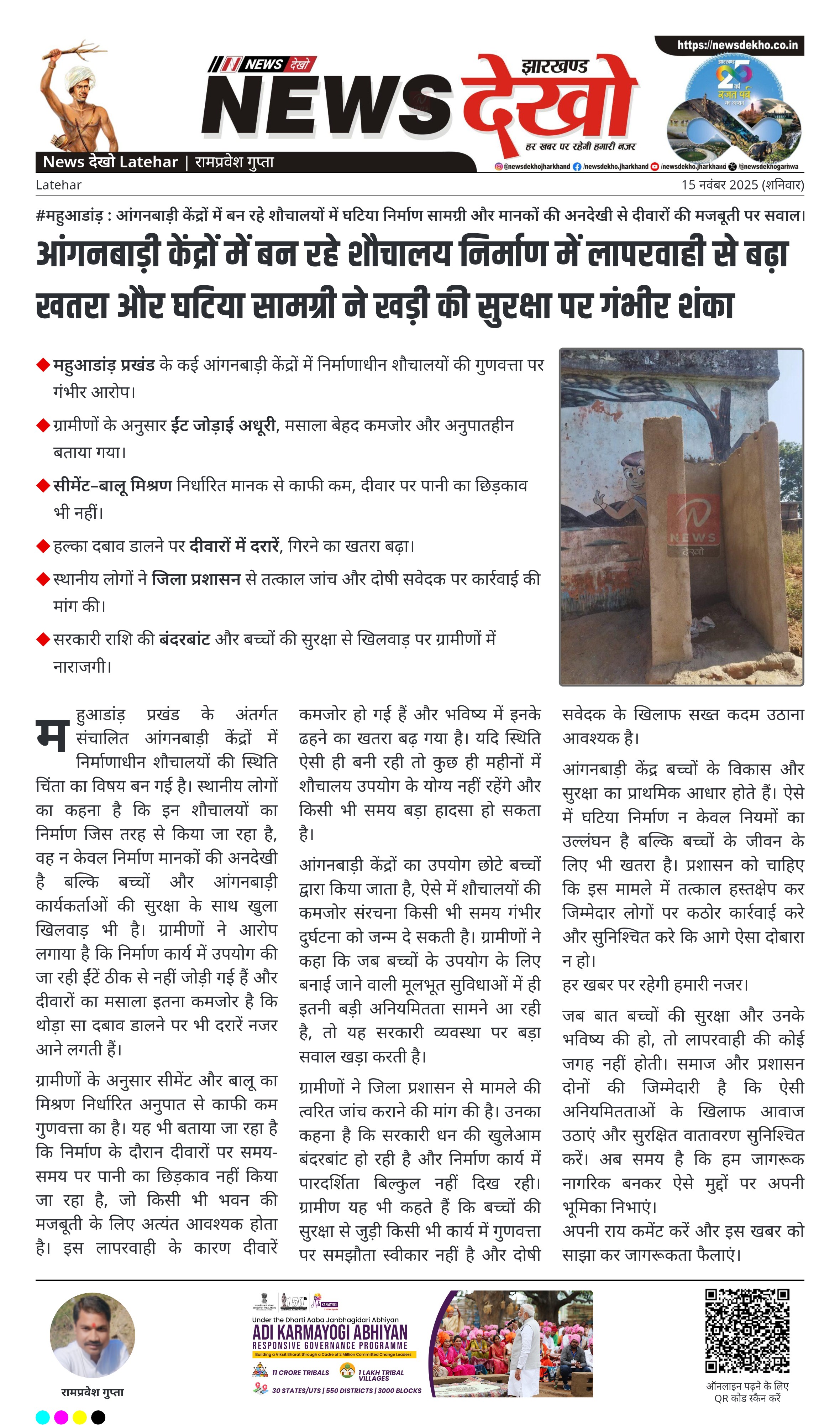• महुआडांड़ प्रखंड के कई आंगनबाड़ी केंद्रों में निर्माणाधीन शौचालयों की गुणवत्ता पर गंभीर आरोप।