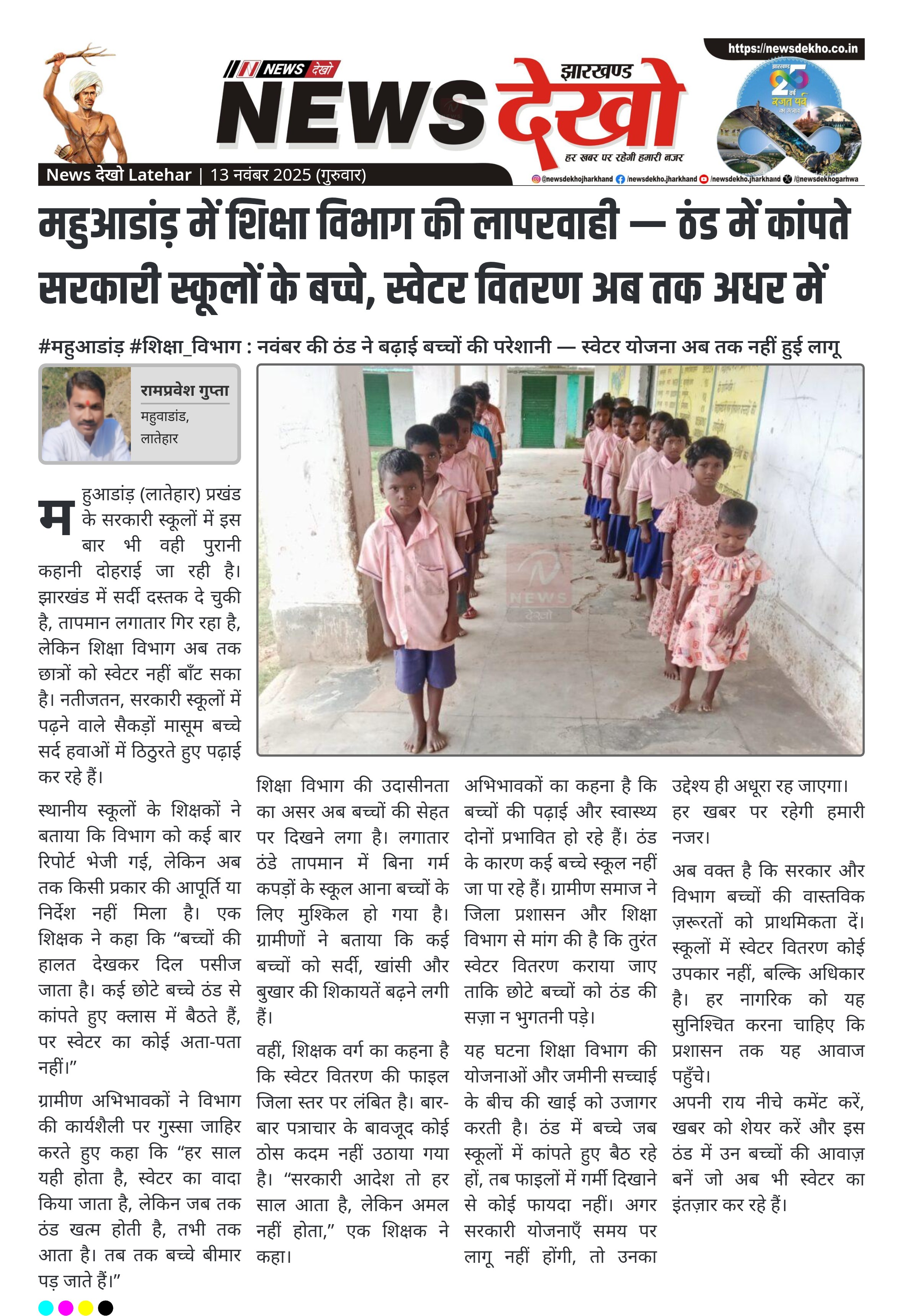 अपनी राय नीचे कमेंट करें, खबर को शेयर करें और इस ठंड में उन बच्चों की आवाज़ बनें जो अब भी स्वेटर का इंतज़ार कर रहे हैं।