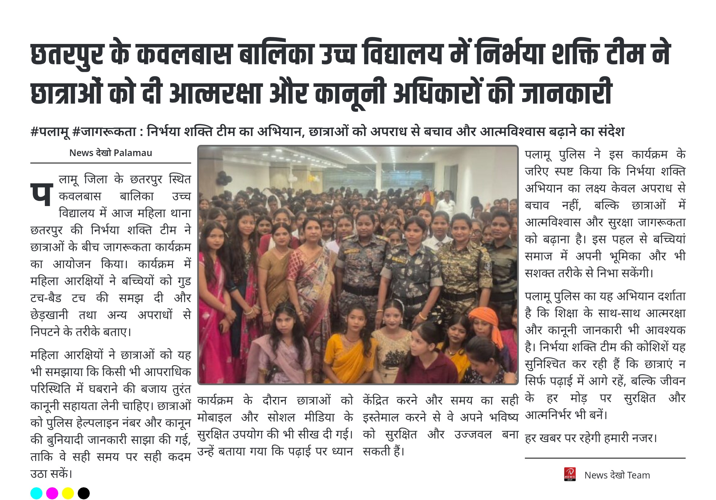 #पलामू #जागरूकता : निर्भया शक्ति टीम का अभियान, छात्राओं को अपराध से बचाव और आत्मविश्वास बढ़ाने का संदेश