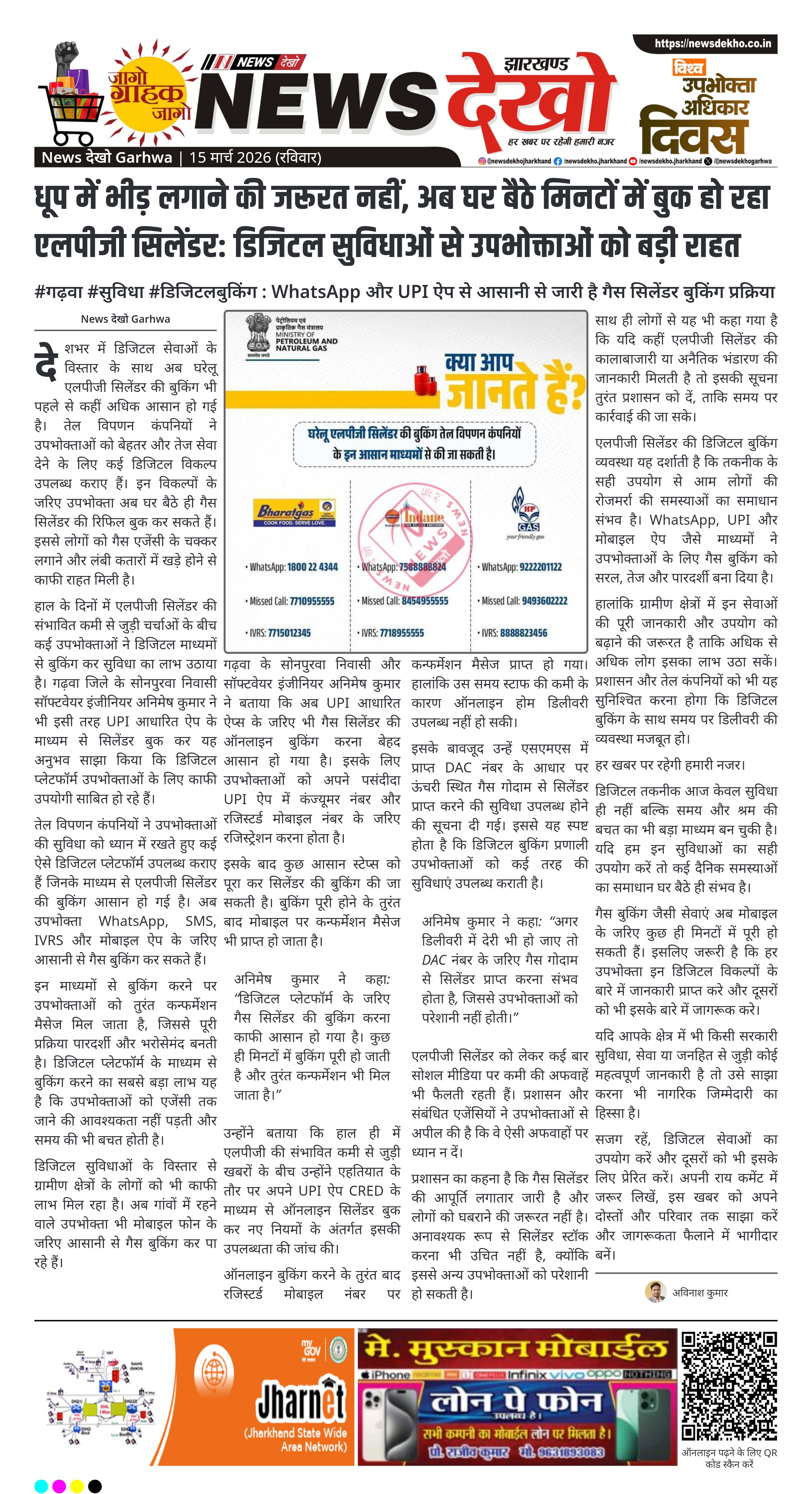 हाल के दिनों में एलपीजी सिलेंडर की संभावित कमी से जुड़ी चर्चाओं के बीच कई उपभोक्ताओं ने डिजिटल माध्यमों से बुकिंग कर सुविधा का लाभ उठाया है। गढ़वा जिले के सोनपुरवा निवासी सॉफ्टवेयर इंजीनियर अनिमेष कुमार ने भी इसी तरह UPI आधारित ऐप के माध्यम से सिलेंडर बुक कर यह अनुभव साझा किया कि डिजिटल प्लेटफॉर्म उपभोक्ताओं के लिए काफी उपयोगी साबित हो रहे हैं।