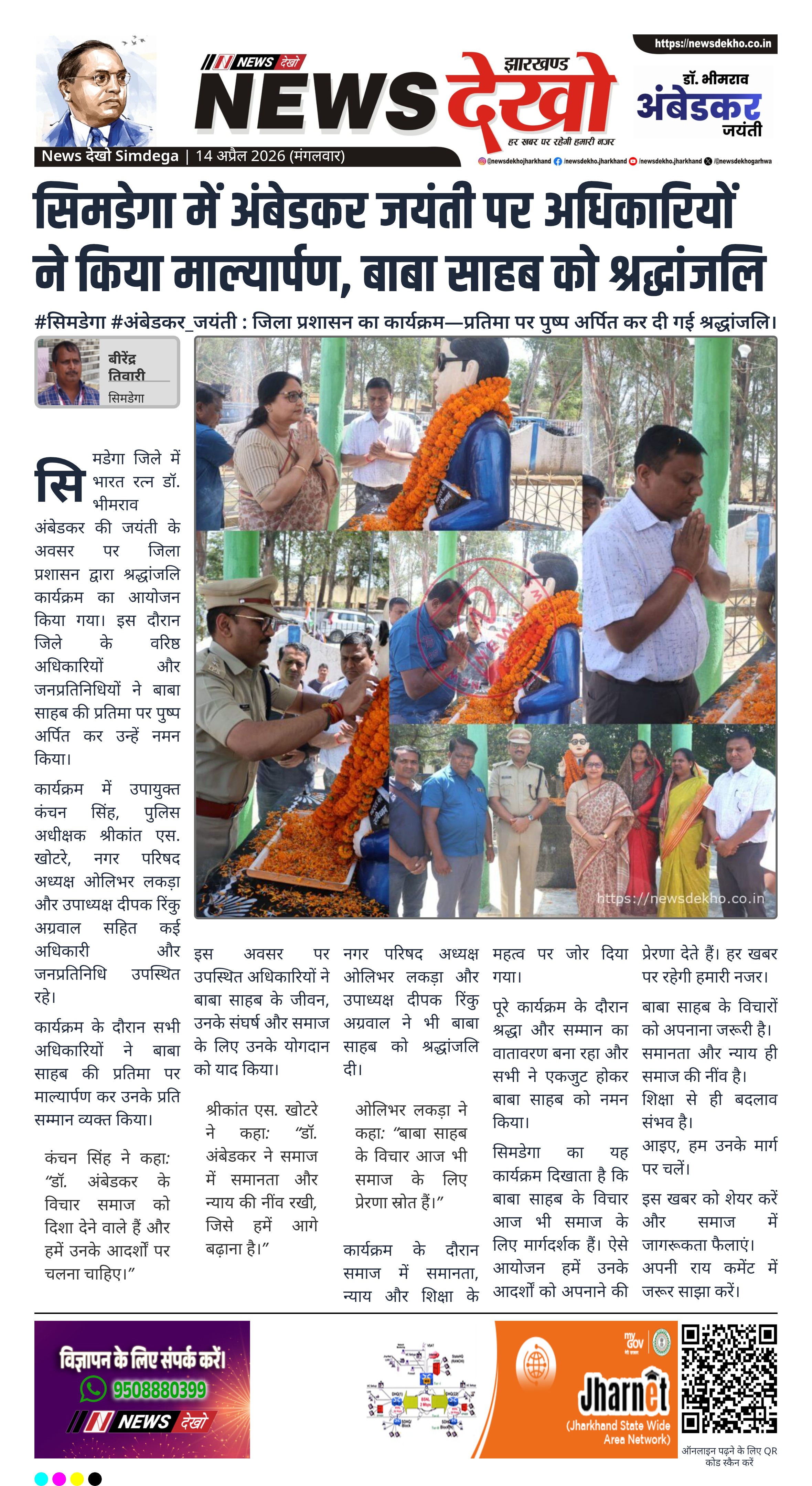 #सिमडेगा #अंबेडकर_जयंती : जिला प्रशासन का कार्यक्रम—प्रतिमा पर पुष्प अर्पित कर दी गई श्रद्धांजलि।